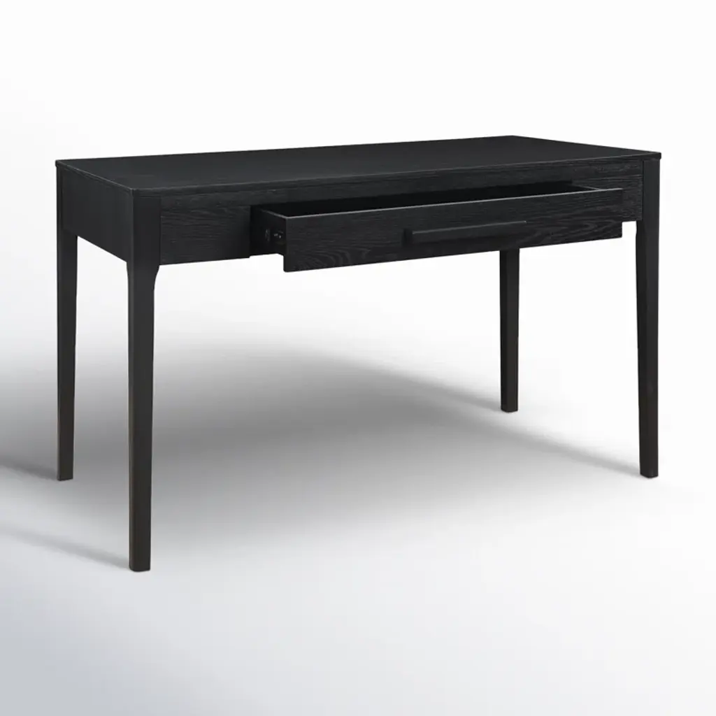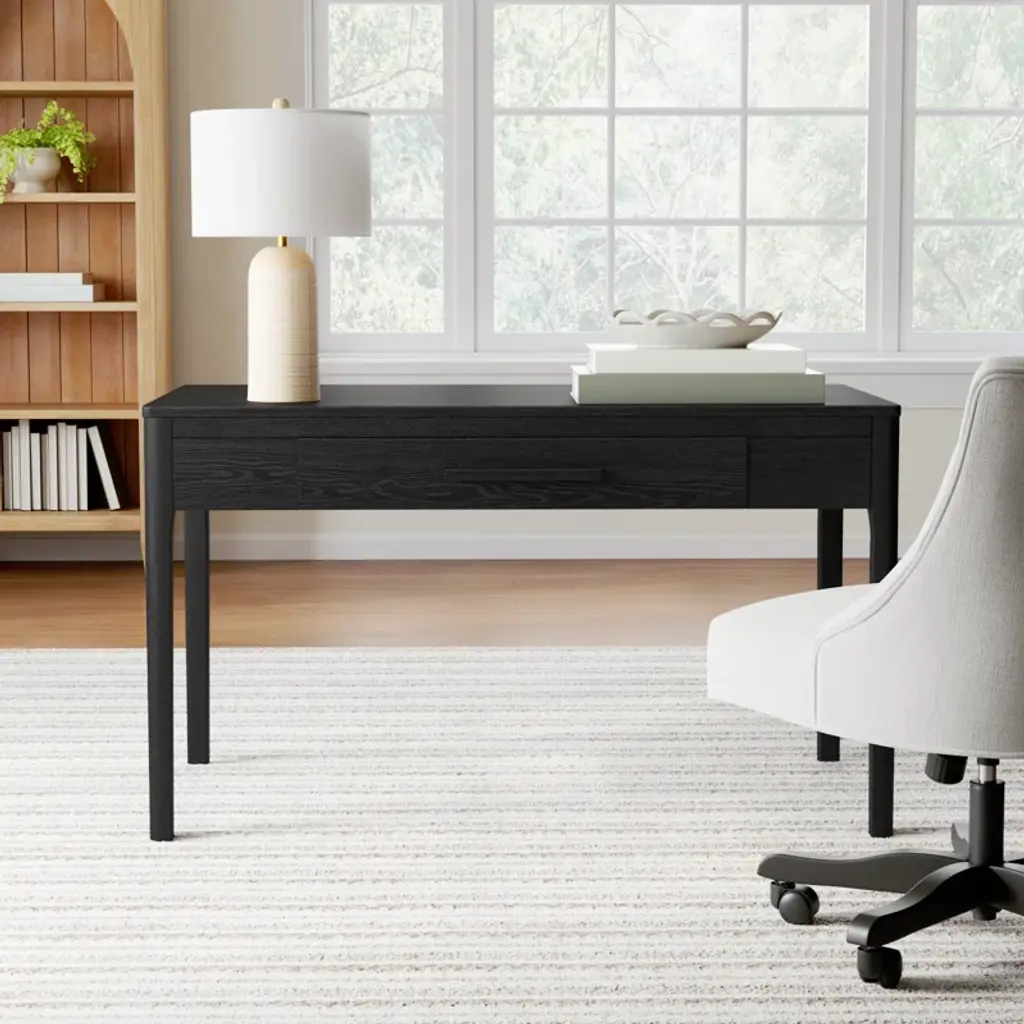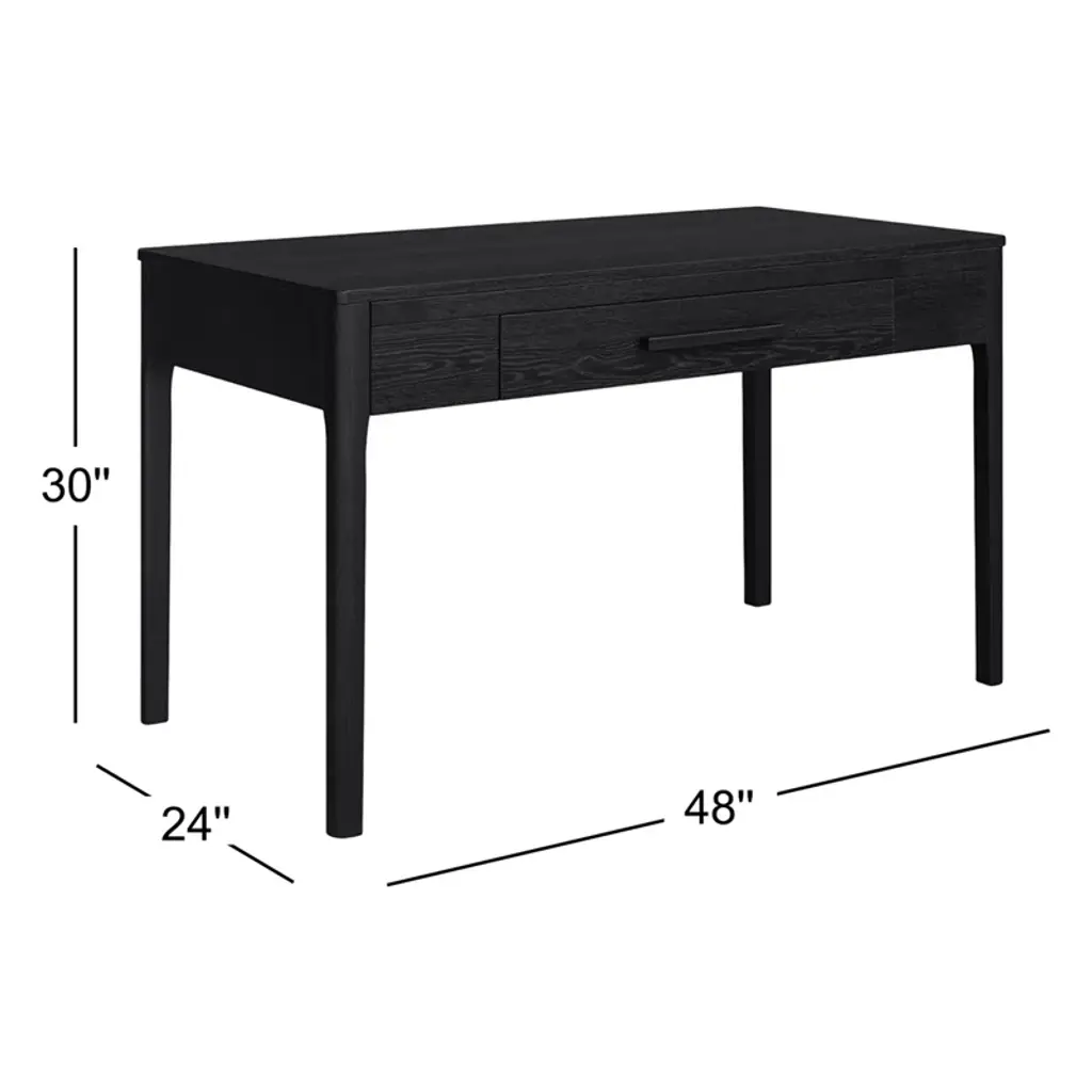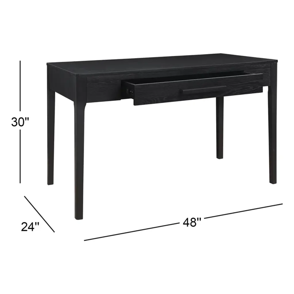 Imagine a sleek, streamlined workspace. This writing desk is a part of that update with its simple silhouette that complements styles from traditional to modern. It’s crafted from kiln-dried wood with a black wire-brushed finish that shows off an organic wood grain. Stash supplies in the single drawer to keep the surface free for your laptop and work accessories.