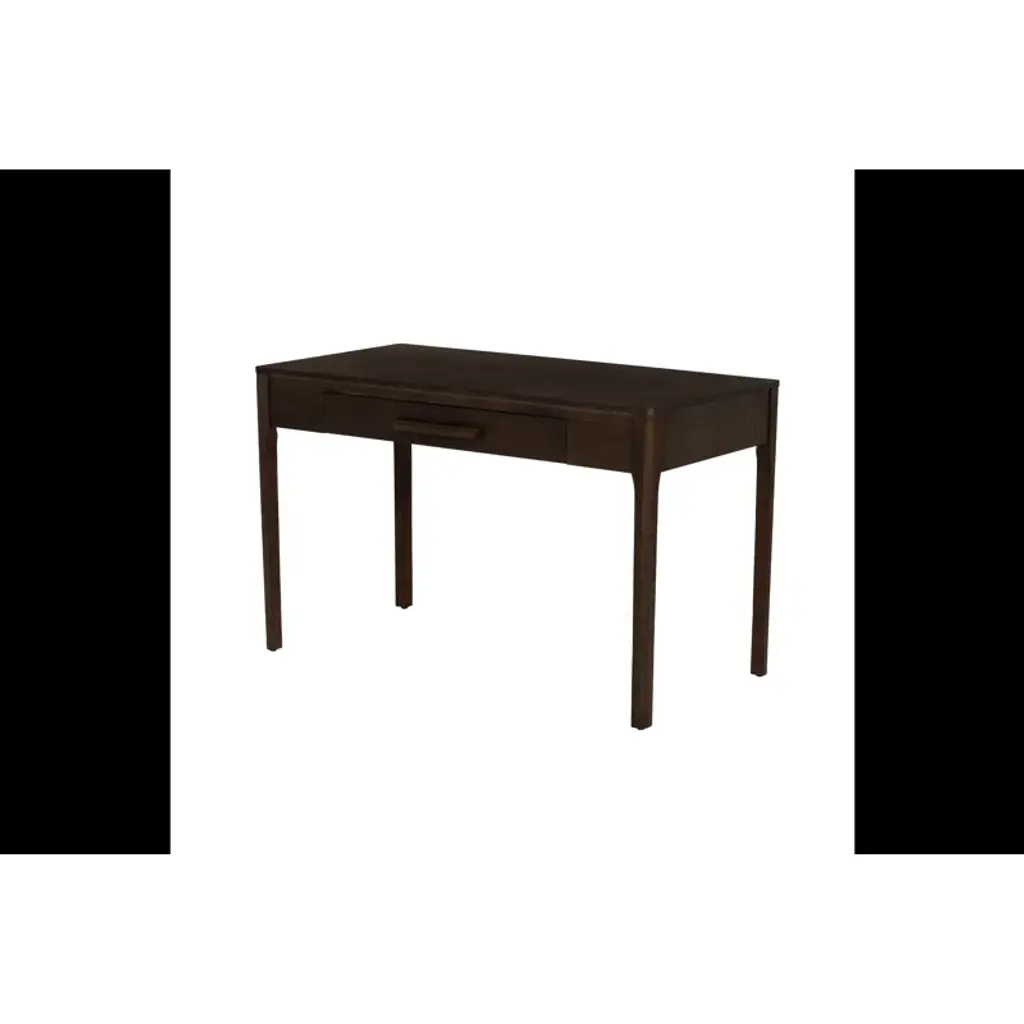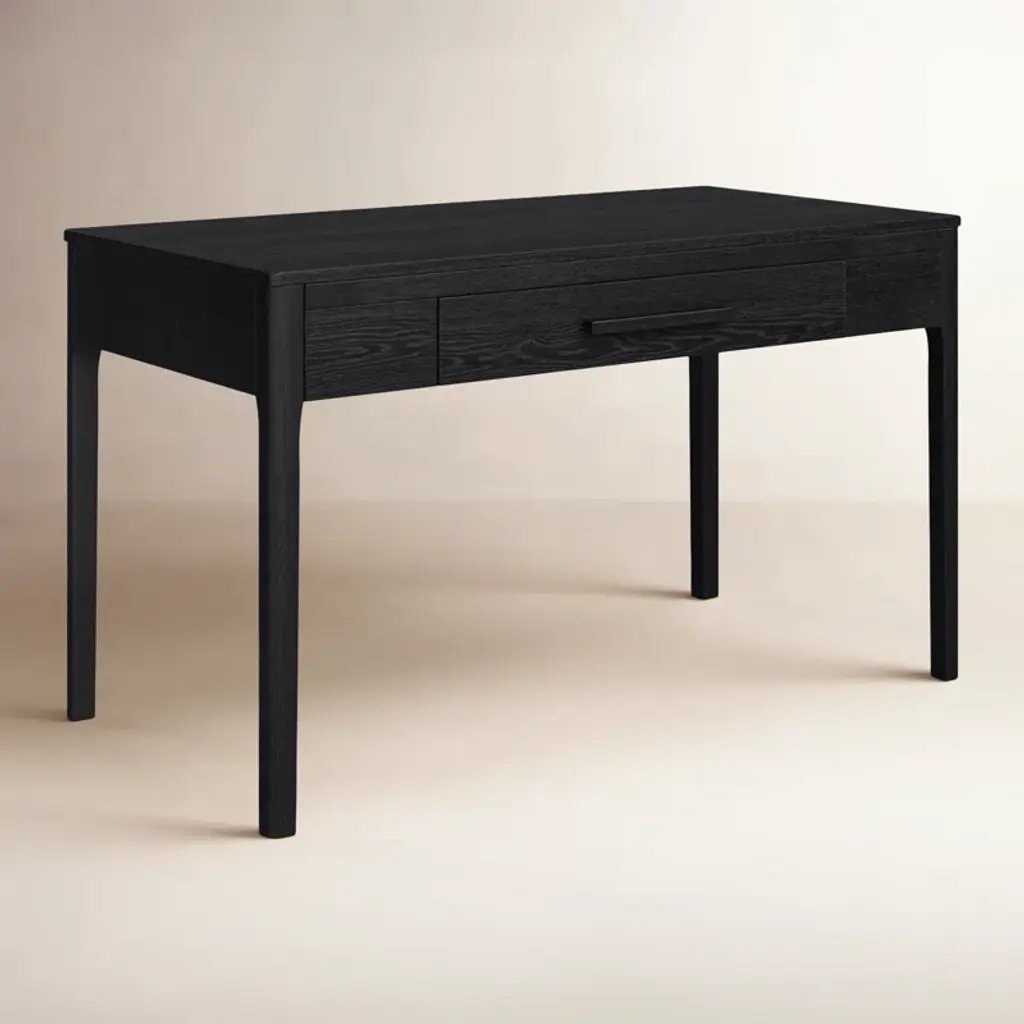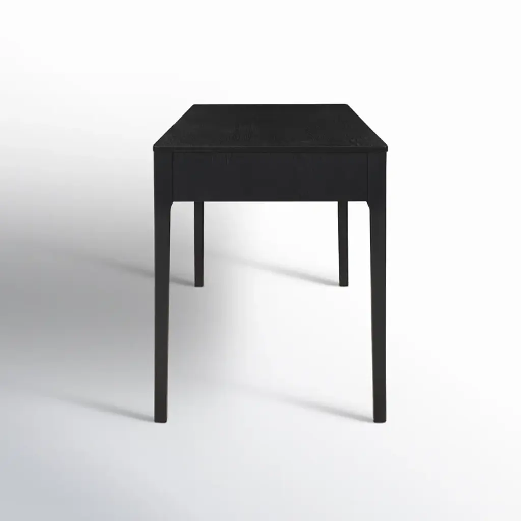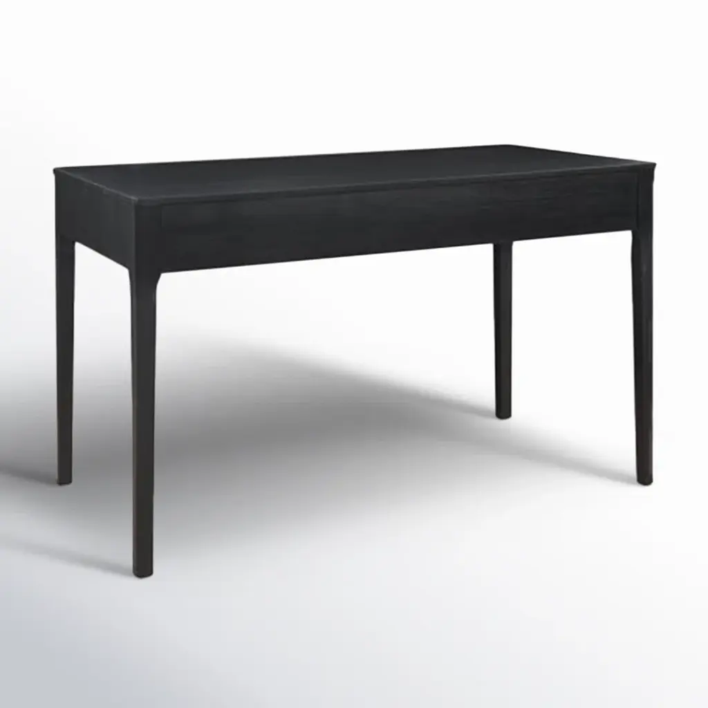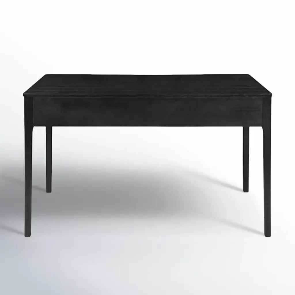 Imagine a sleek, streamlined workspace. This writing desk is a part of that update with its simple silhouette that complements styles from traditional to modern. It’s crafted from kiln-dried wood with a black wire-brushed finish that shows off an organic wood grain. Stash supplies in the single drawer to keep the surface free for your laptop and work accessories.