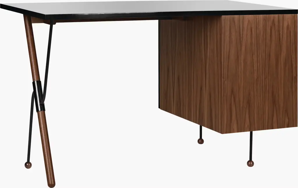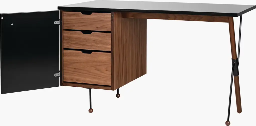 Like the houses she designed, Grossman's 62 Series Desk (1952) is defined by its diminutive scale and lightness of form. With a wink toward the space-age aesthetic of the time, it's both playful and elegant - and because it looked to be 10 years ahead of its time when it was designed in 1952, Grossman named it for the future year of '62. Fast-forward to today, and its timeless quality endures. With its mix of natural and man-made materials, the 62 Series Desk exemplifies how Grossman combined Scandinavian and Californian design influences. “Comfort was a prime consideration," said Grossman of this design, “as well as functional character that comes from the elimination of the nonessentials." Inside are three drawers on soft-closing vacuum glides. Made in Denmark.
