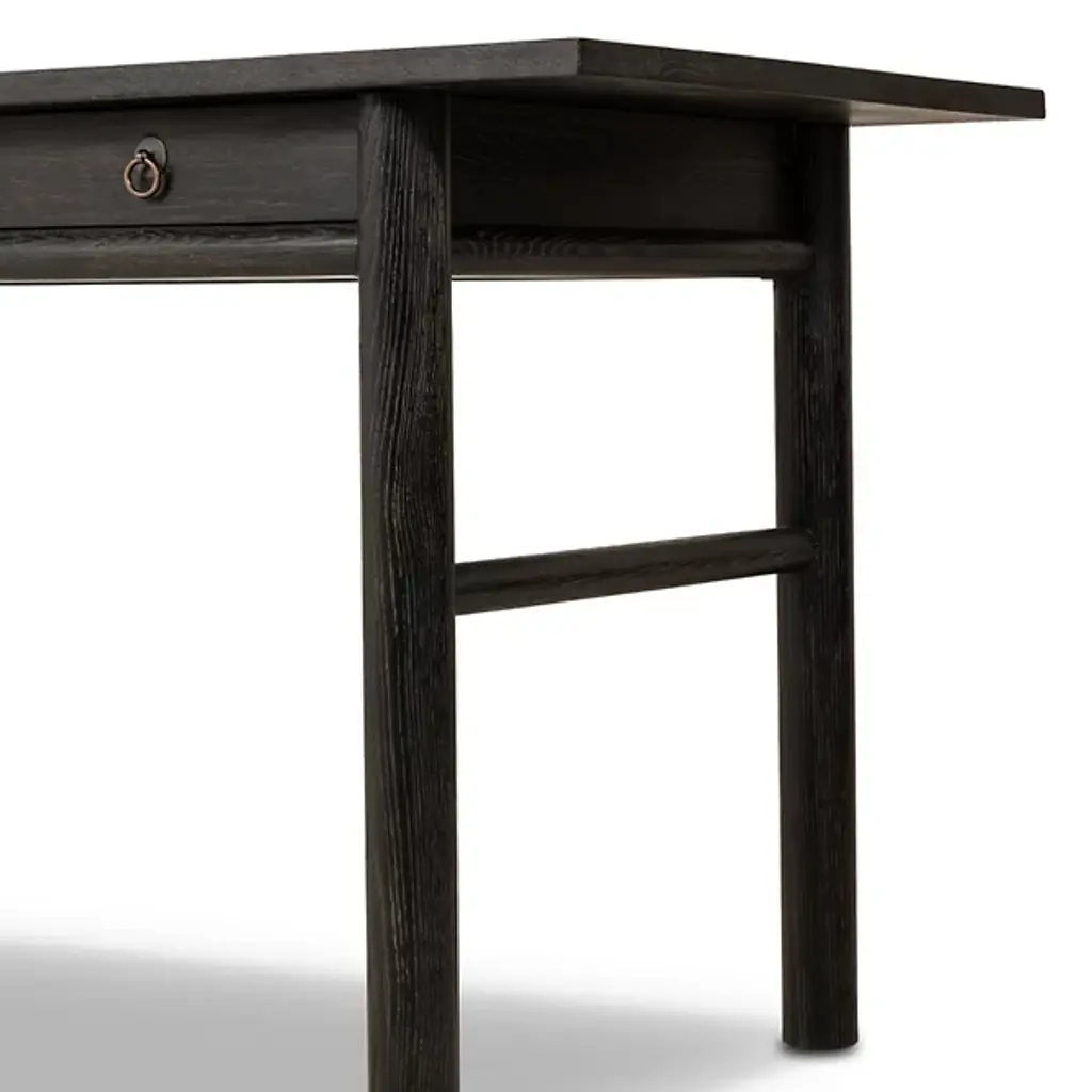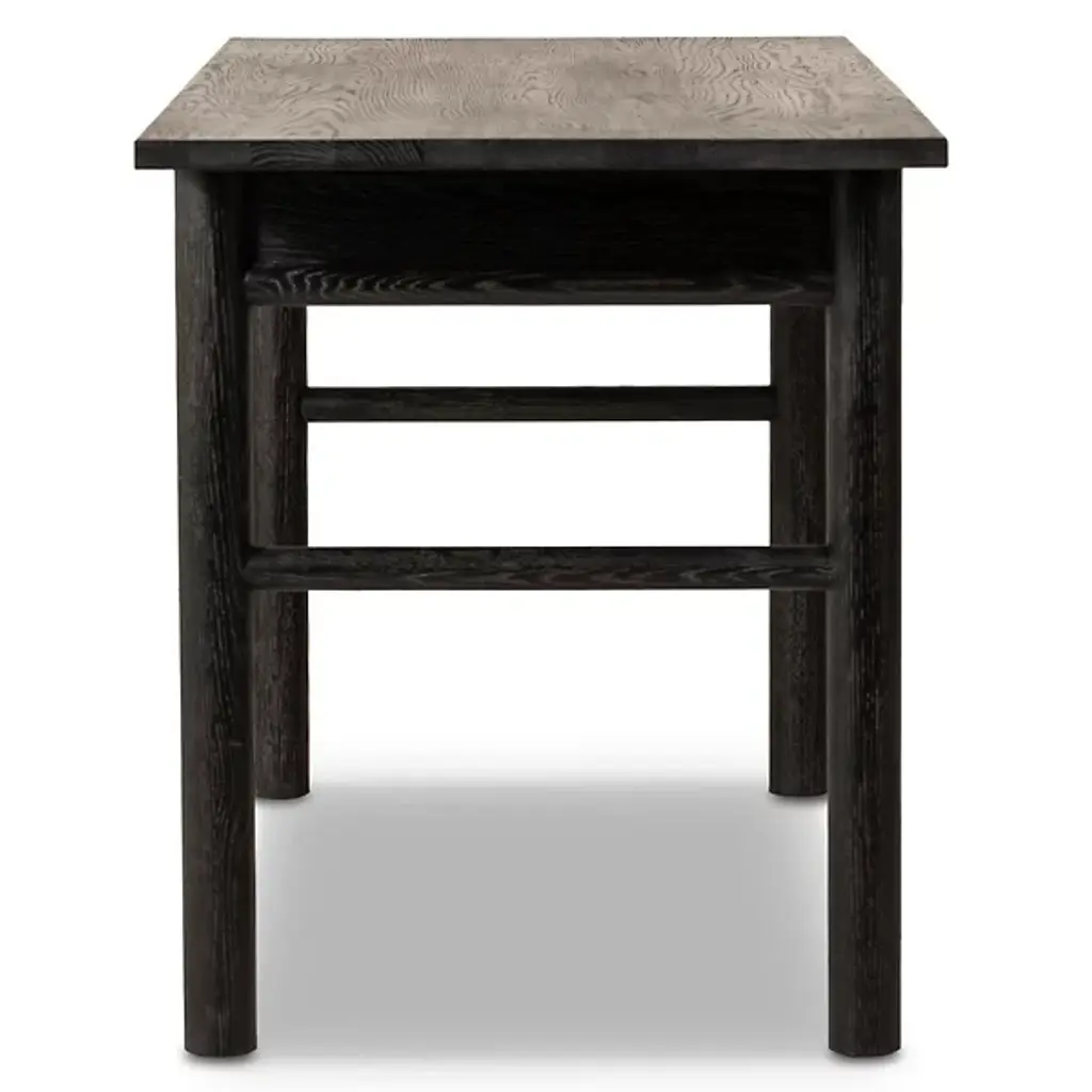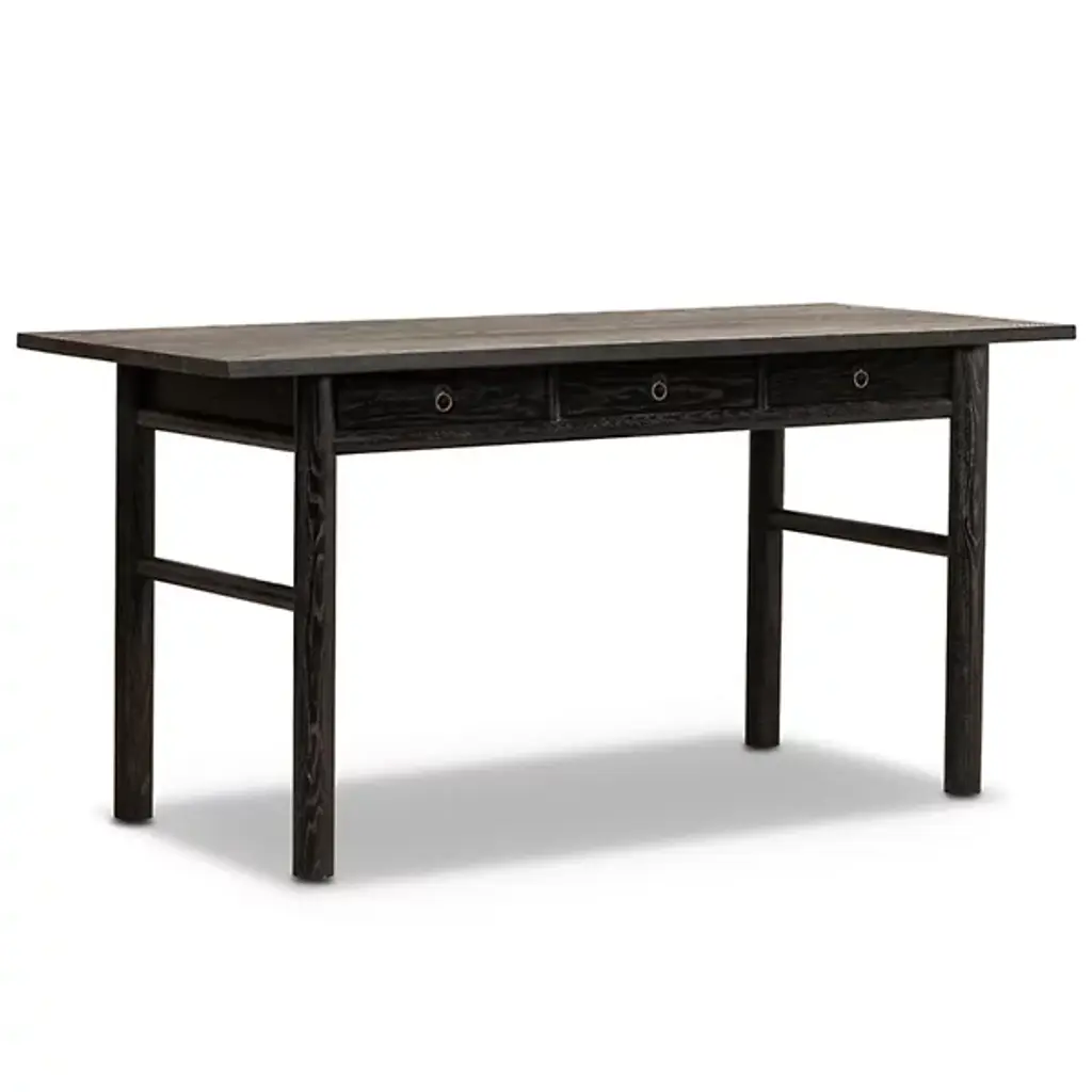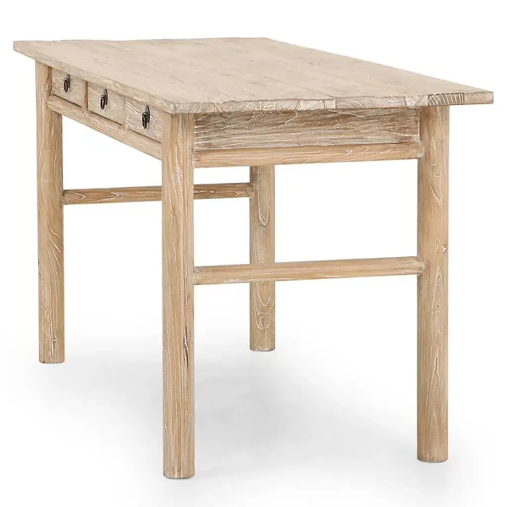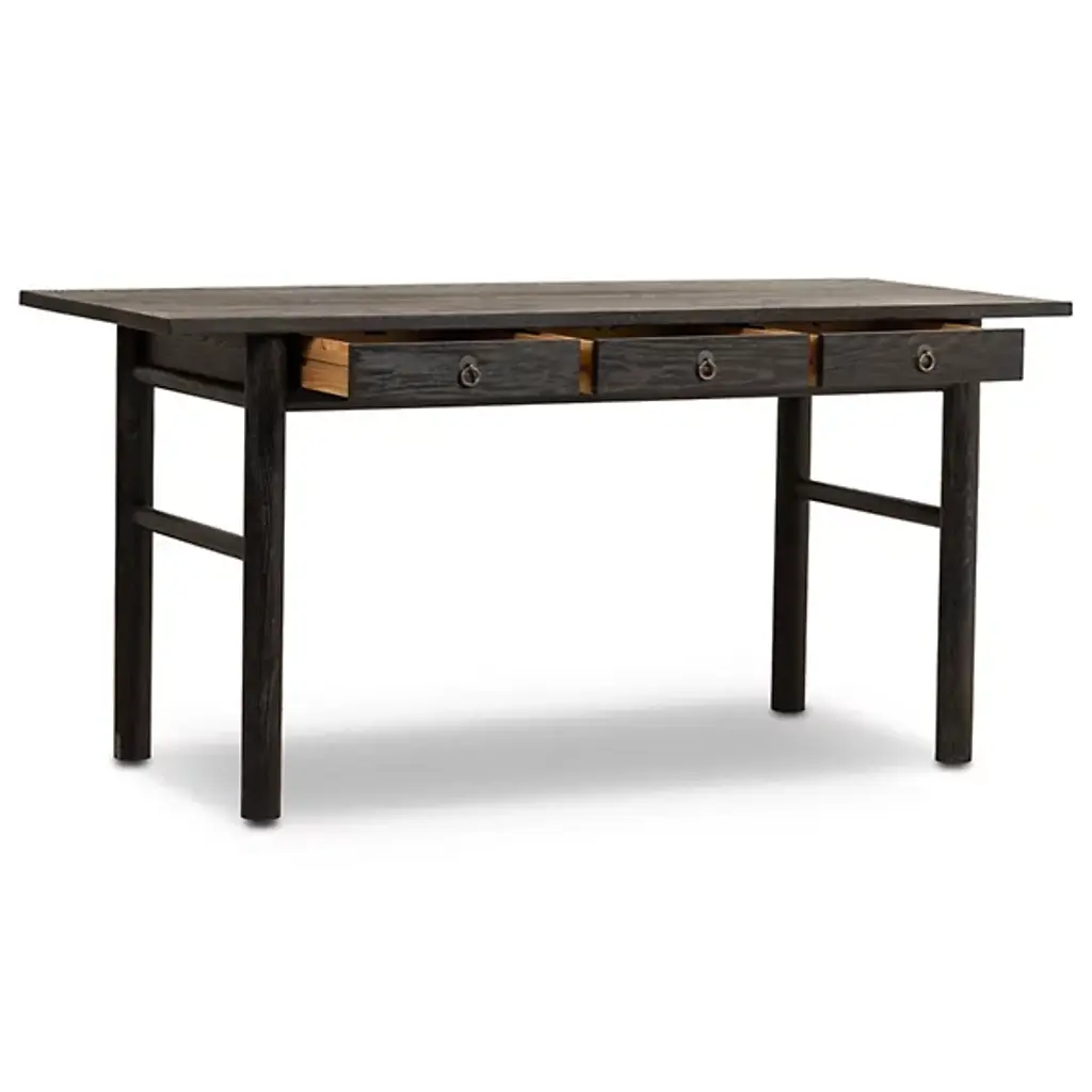 The Griffith Desk from Four Hands puts a contemporary twist on classic Chinese design. Made from distressed oak, this altar-style desk exudes rustic charm while offering a sleek workspace. Three spacious pencil drawers, adorned with copper-clad ring pull hardware, provide a refined touch of vintage appeal. Perfect for home offices or creative spaces, this elegant desk combines lasting craftsmanship with modern functionality, making it a statement piece that blends seamlessly into any interior.