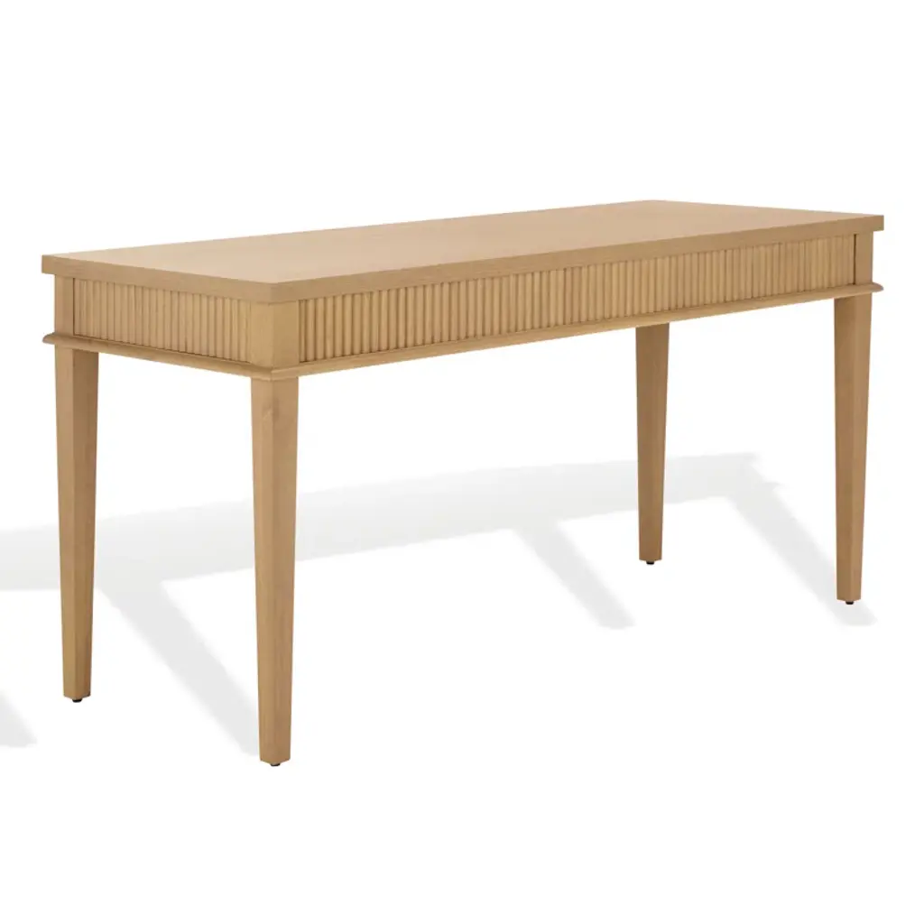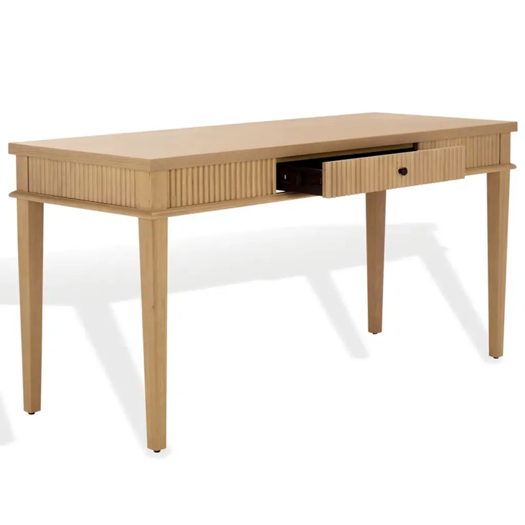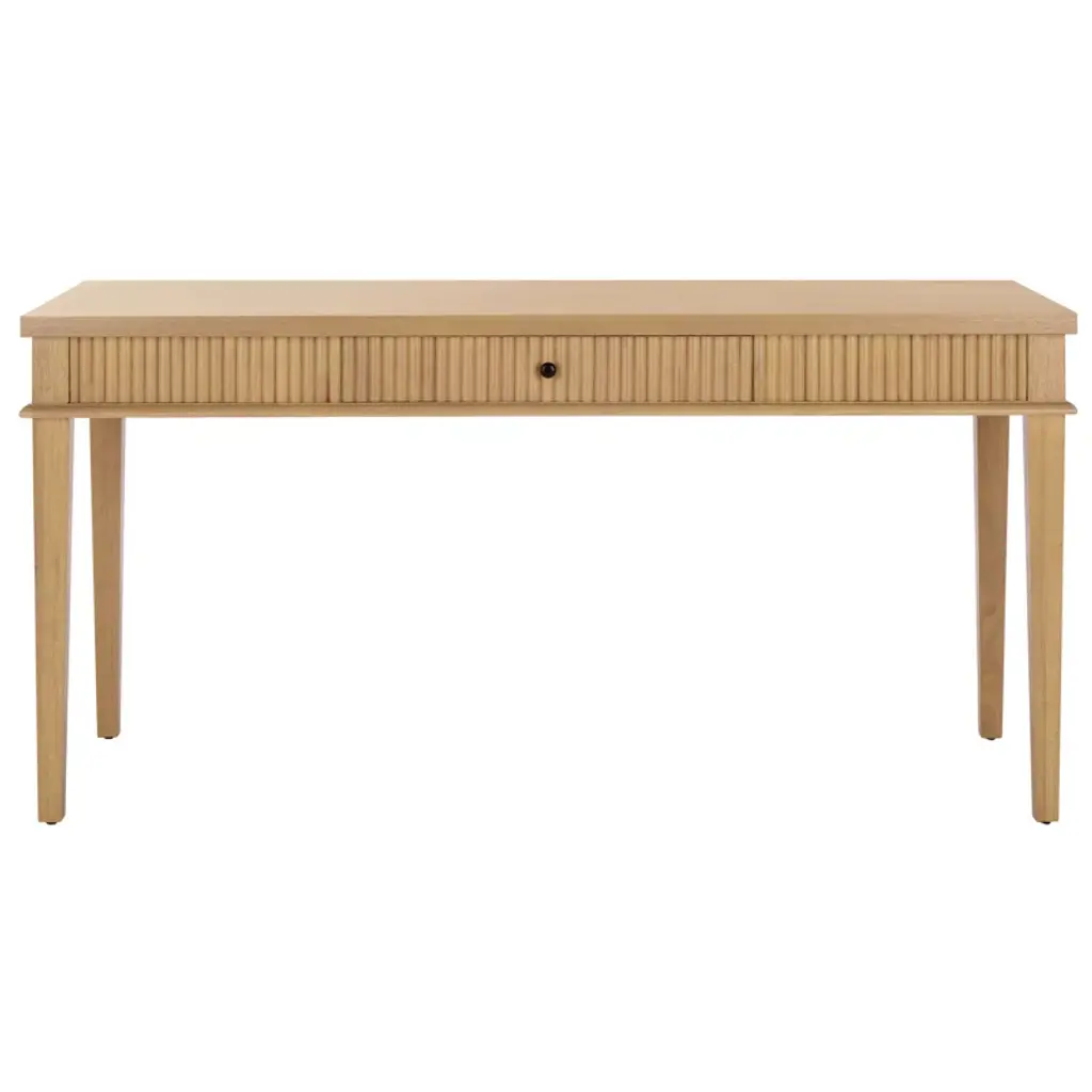 With bold contrast and sculpted texture, this writing desk blends clean-lined design with thoughtful function. A smooth-gliding drawer offers handy storage, while the reeded front and finished back give it standout appeal from any angle. Whether you're tackling to-dos or diving into a creative flow, this desk sets the scene with modern ease.