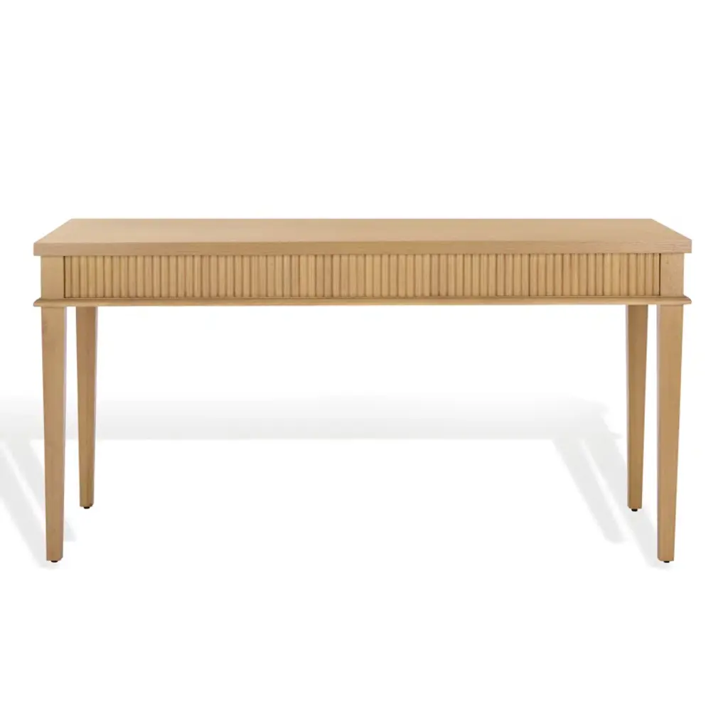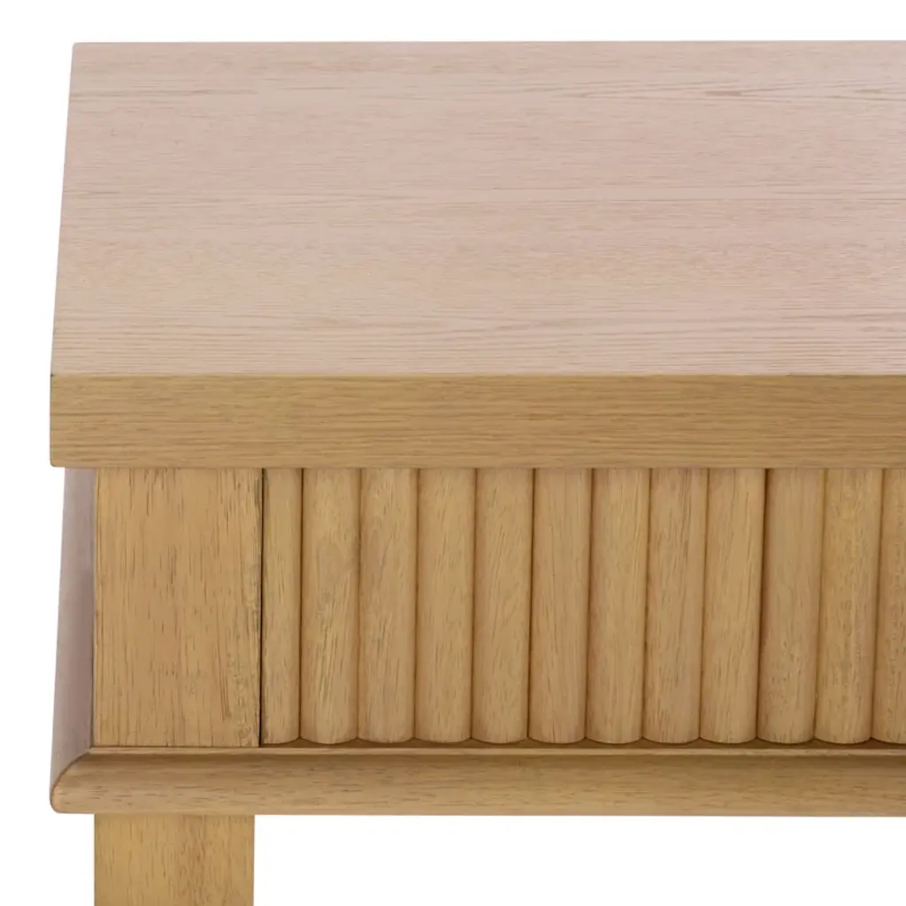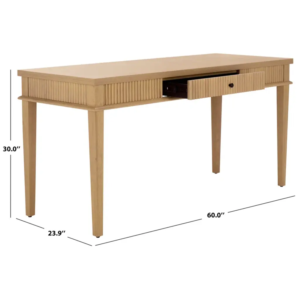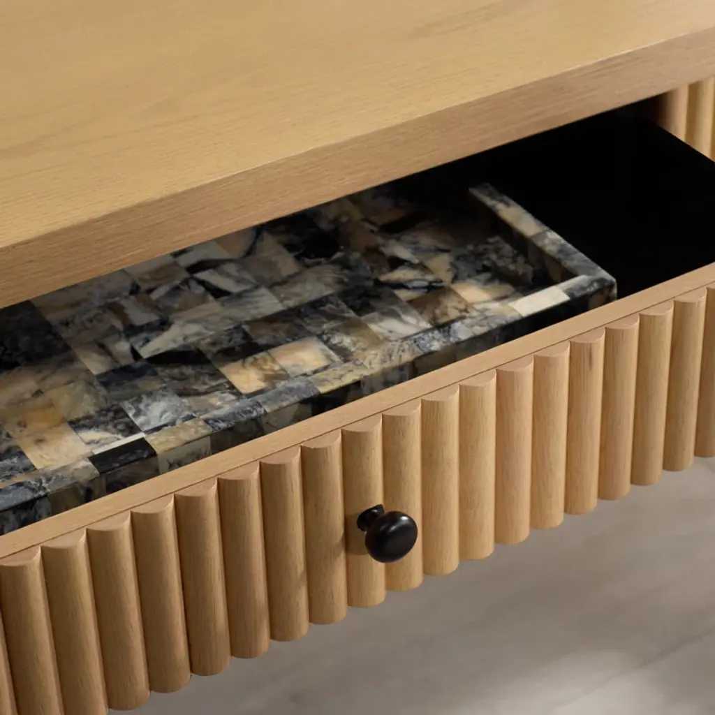 With bold contrast and sculpted texture, this writing desk blends clean-lined design with thoughtful function. A smooth-gliding drawer offers handy storage, while the reeded front and finished back give it standout appeal from any angle. Whether you're tackling to-dos or diving into a creative flow, this desk sets the scene with modern ease.