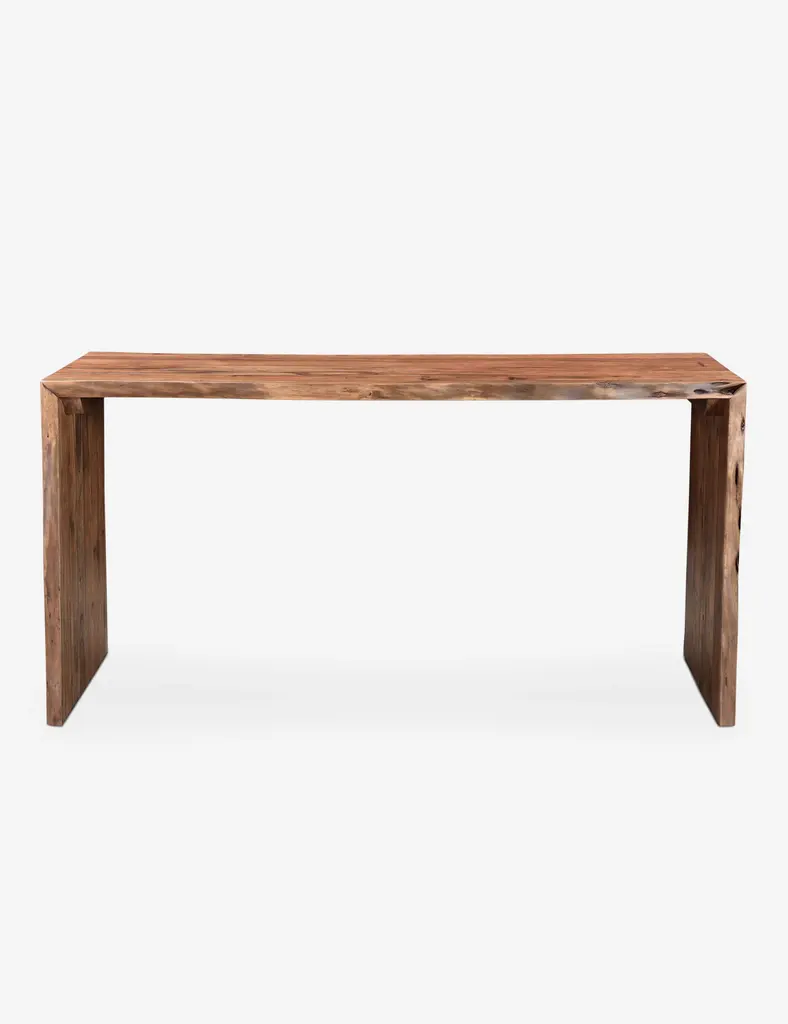 The Haworth desk brings a beautiful balance to the room—perfect for grounding a minimalist workspace or layering natural warmth into your home office. This wood desk's waterfall design offers a spare, streamlined look with the live edge, knotting, and dramatic wood grain inspiring a unique, organic character.