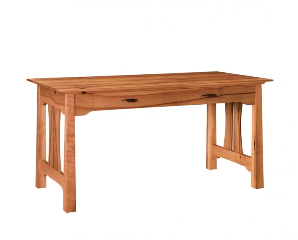 Our Heartwood Shaker Library Desk is handmade using premium wood and crafted to last a lifetime. This solid wood Heartwood Shaker Style Library Writing Desk will impress clients and friends who visit your home or office. Organize everything at your fingertips in its three pencil drawers. Each desk is unique, handmade in Vermont using sustainably harvested woods by local furniture makers. All our Heartwood Shaker Style collection is handcrafted to order in Vermont in your choice of solid cherry, maple, or walnut woods with an eco-friendly oil finish that not only protects but enhances the natural beauty of the wood. Traditional craftsmanship, built for generations of use.Base price represents desk with drop-front keyboard tray in natural cherryShown in natural cherry with pencil drawerMatching furniture available in our Heartwood Shaker Furniture Collection