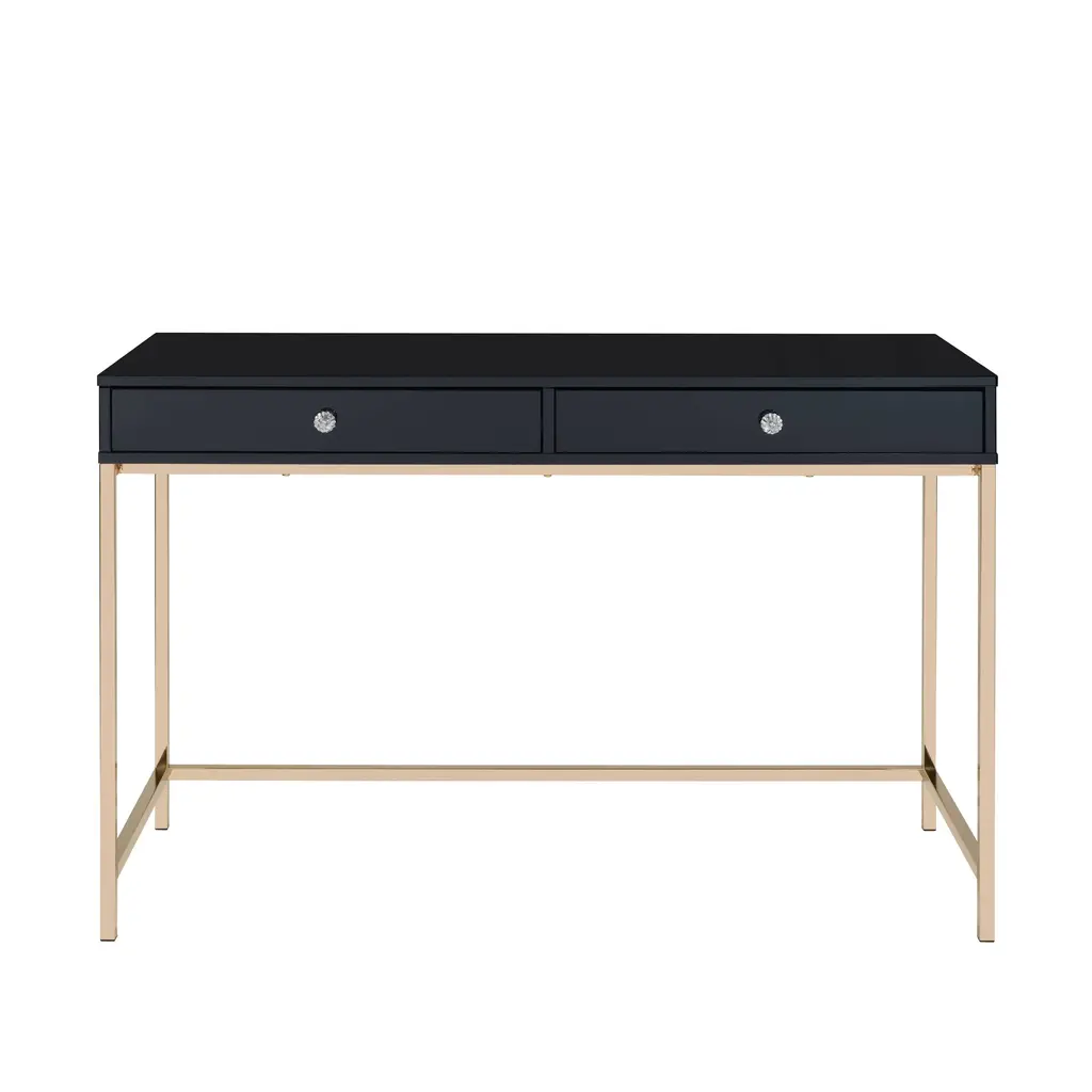 High Gloss And Gold 2-Drawer Writing Desk - Black