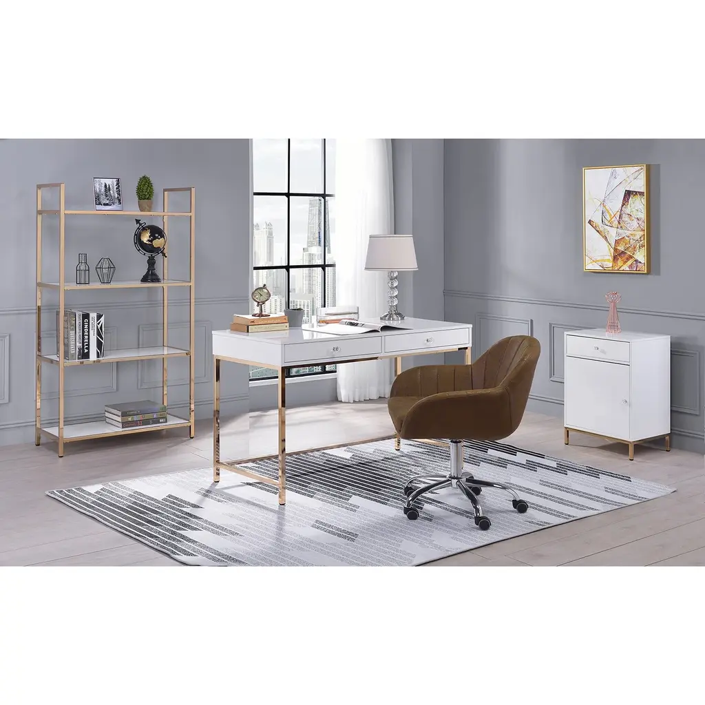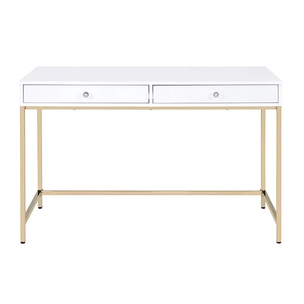 High Gloss And Gold 2-Drawer Writing Desk - White