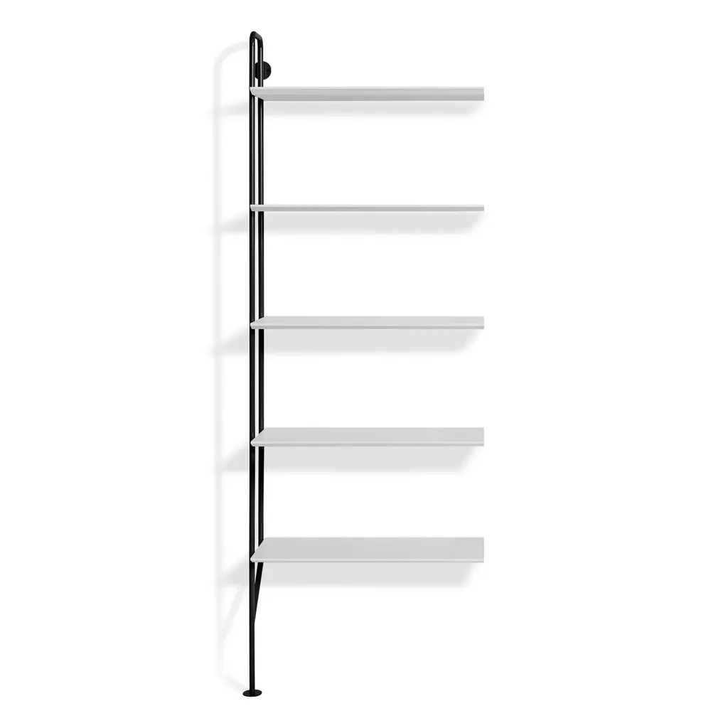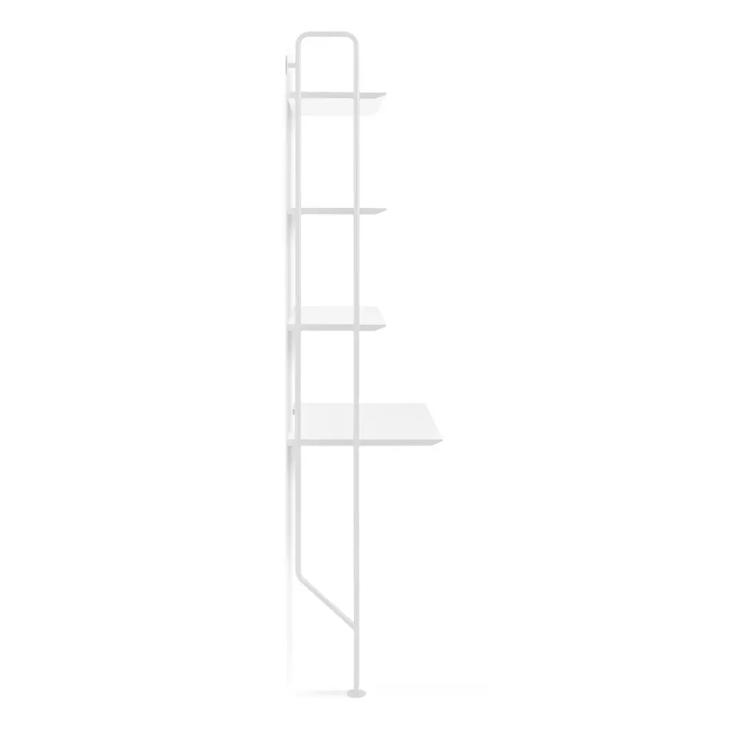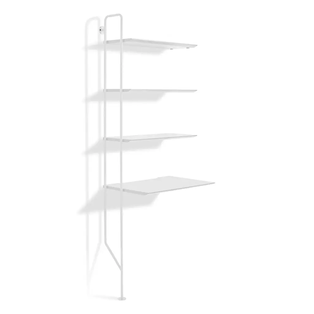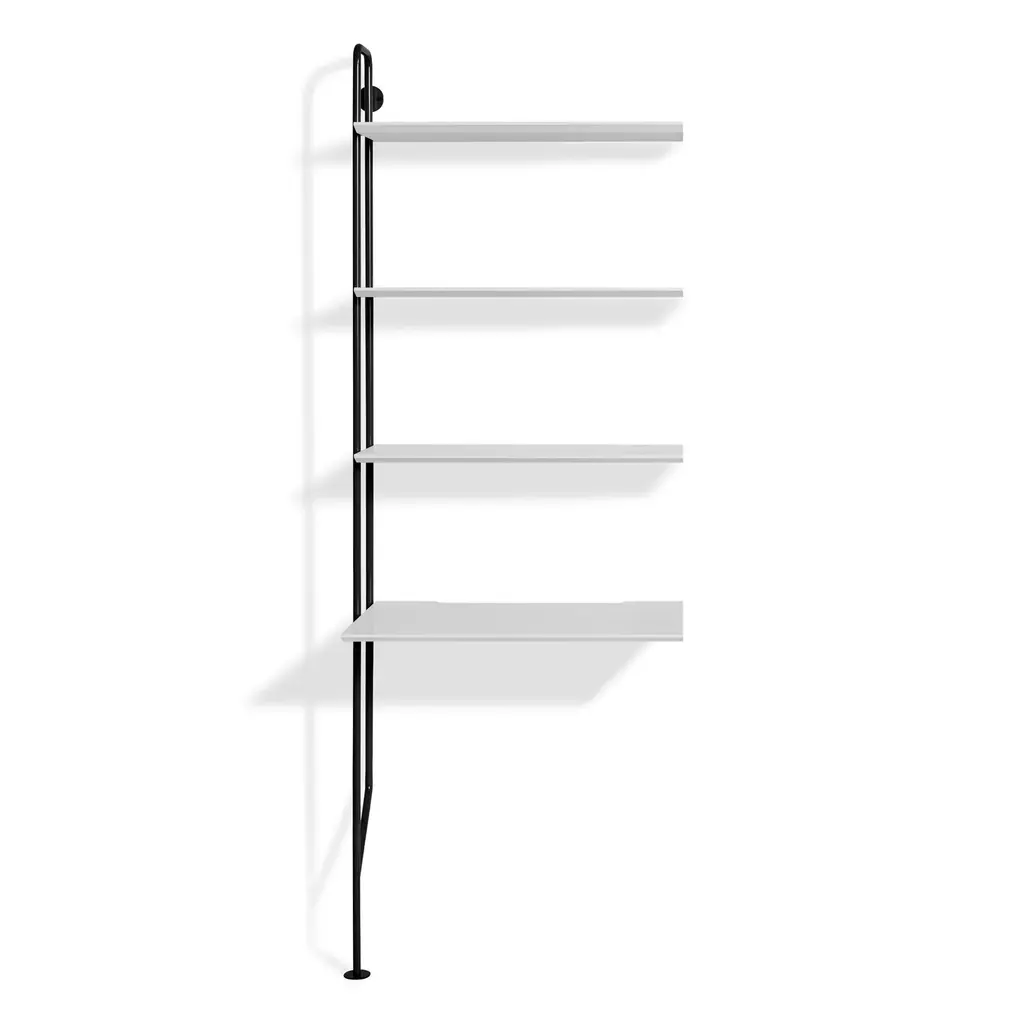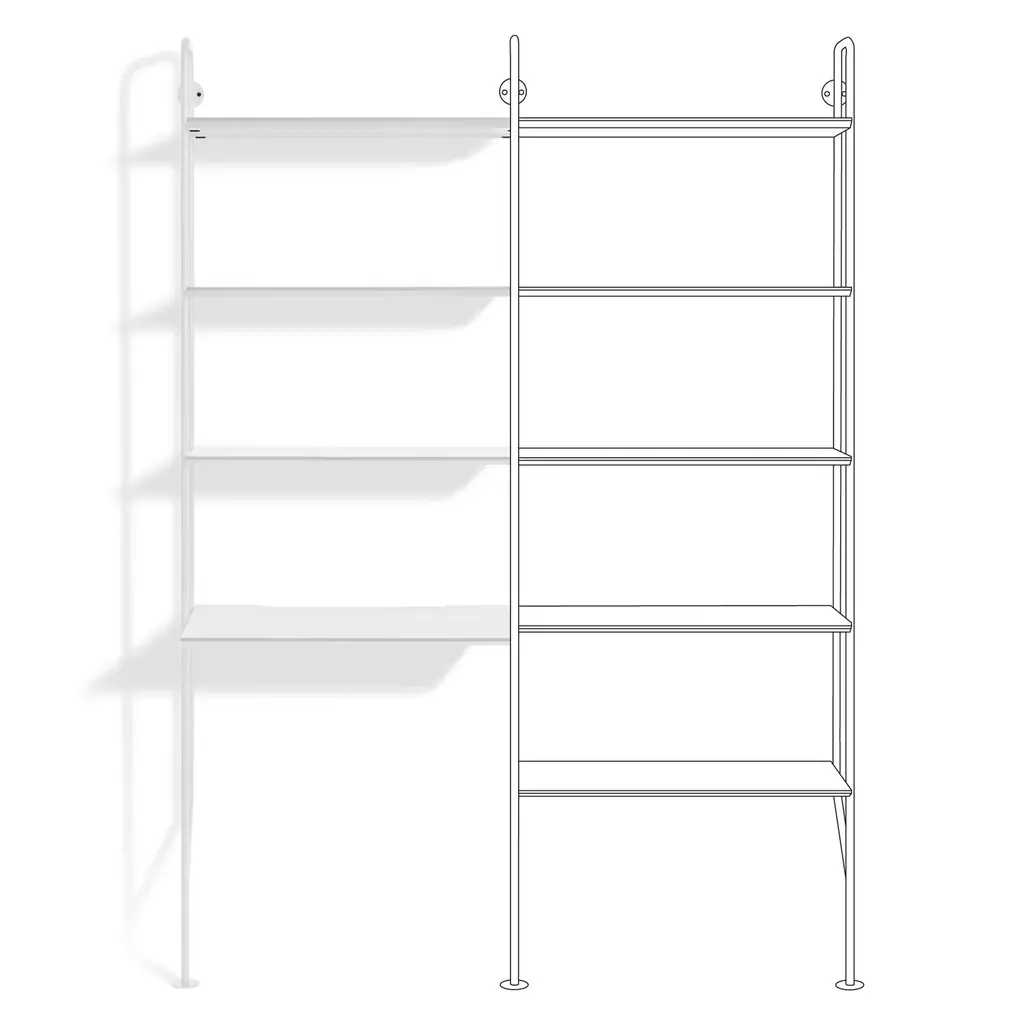 Powder-coated steel uprights and wood shelves in multiple finish options make you the master of your own book case destiny. We added a desk with the perfect work surface for even more choices. Single units stand alone. Gang up multiples to create mass appeal.Please note: The Hitch Add-on unit requires attachment to a Hitch Bookcase. Shown with one Hitch Bookcase and one Add-on unit.