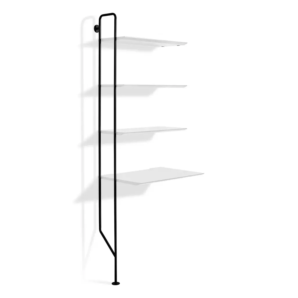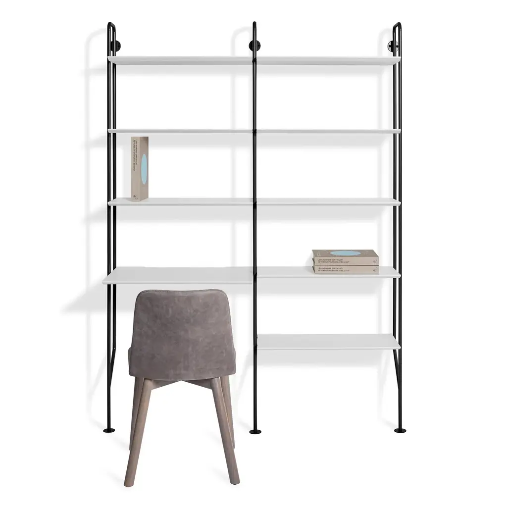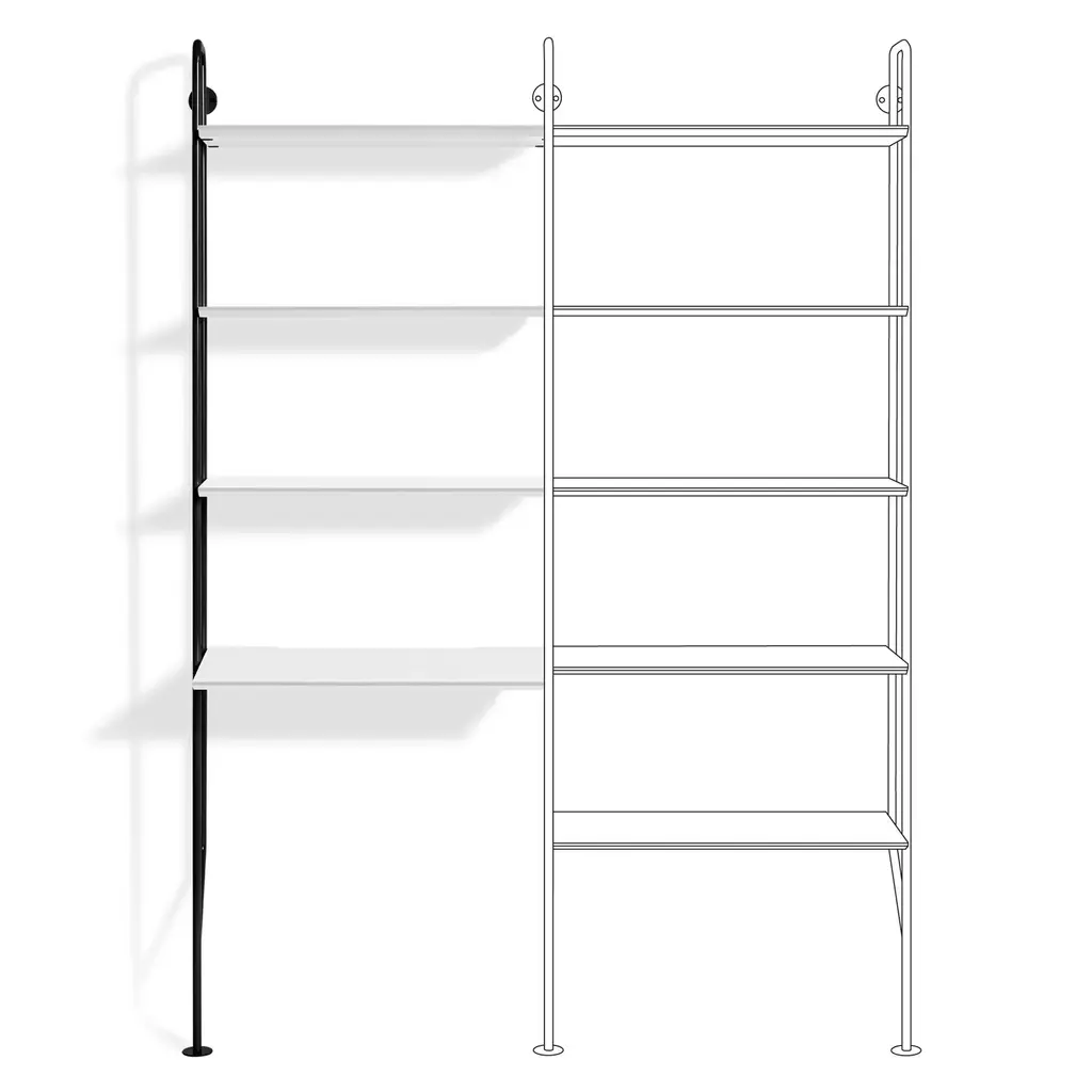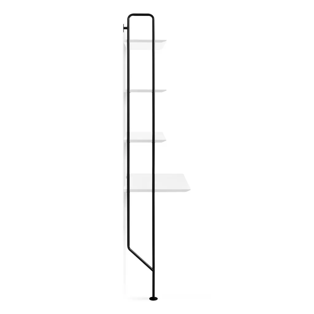 Powder-coated steel uprights and wood shelves in multiple finish options make you the master of your own book case destiny. We added a desk with the perfect work surface for even more choices. Single units stand alone. Gang up multiples to create mass appeal.Please note: The Hitch Add-on unit requires attachment to a Hitch Bookcase. Shown with one Hitch Bookcase and one Add-on unit.