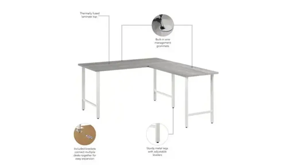 Homedesksl Shaped Desksl Shaped Desk Shells60in W X 30in D L-Shaped Computer Desk With Metal Legs By Bush