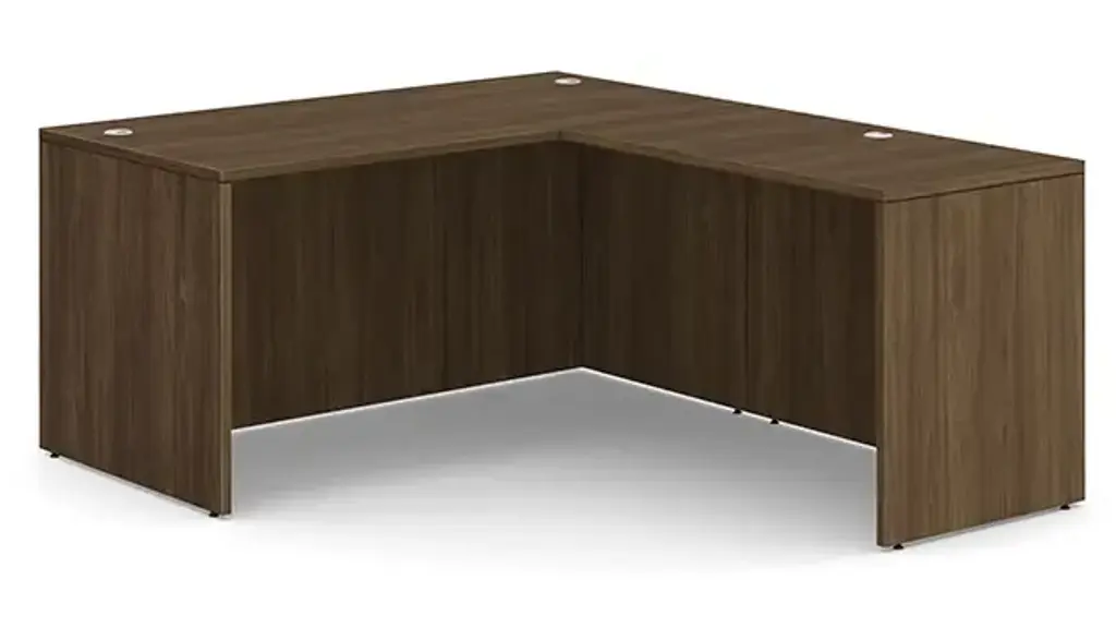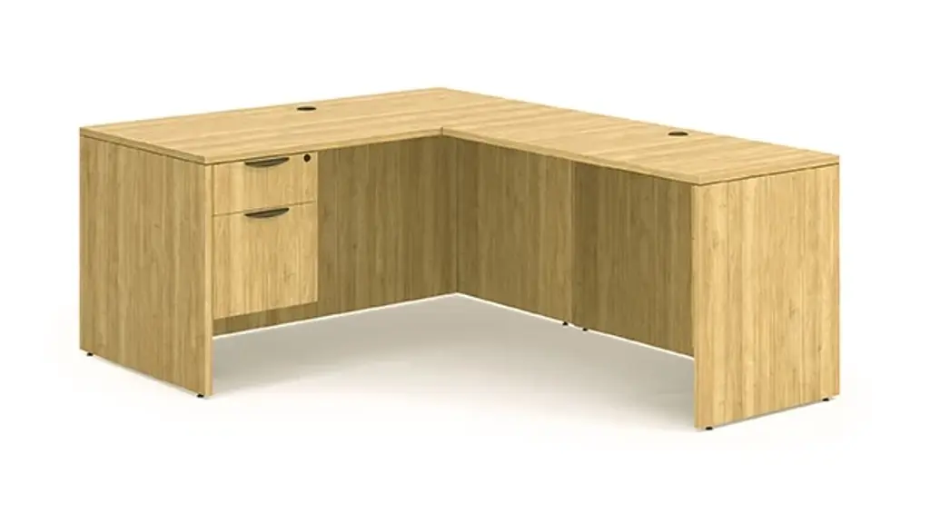 Durable laminate finish. Impact resistant edge protection. L-desk is fully reversible. Desk Shell Only - Pedestals Sold Separately. Ships ready for easy assembly.