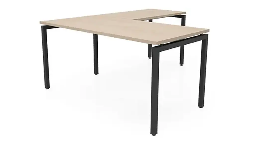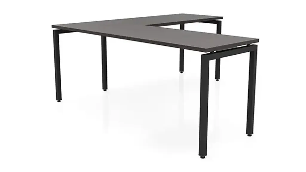This Desk is Reversible OnTask Slender L Shaped Desk offers a wonderful mixed material look that can be used in any work environment. Slender because the work surface is 24"D on both the desk and the return. Laminate top is 1" thick and is supported by the OnTask metal legs. Available in several laminate finishes and 2 metal colors. Ships ready for easy assembly.