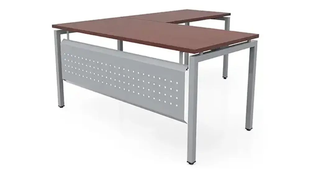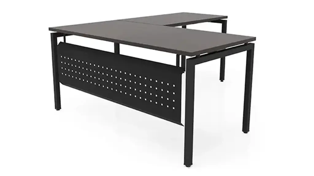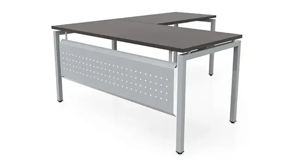 This Desk is Reversible OnTask L Shaped Desk offers a wonderful mixed material look that can be used in any work environment. Laminate top is 1" thick and is supported by the OnTask metal legs. Available in several laminate finishes and 2 metal colors. Includes punched metal modesty panel. Ships ready for easy assembly.