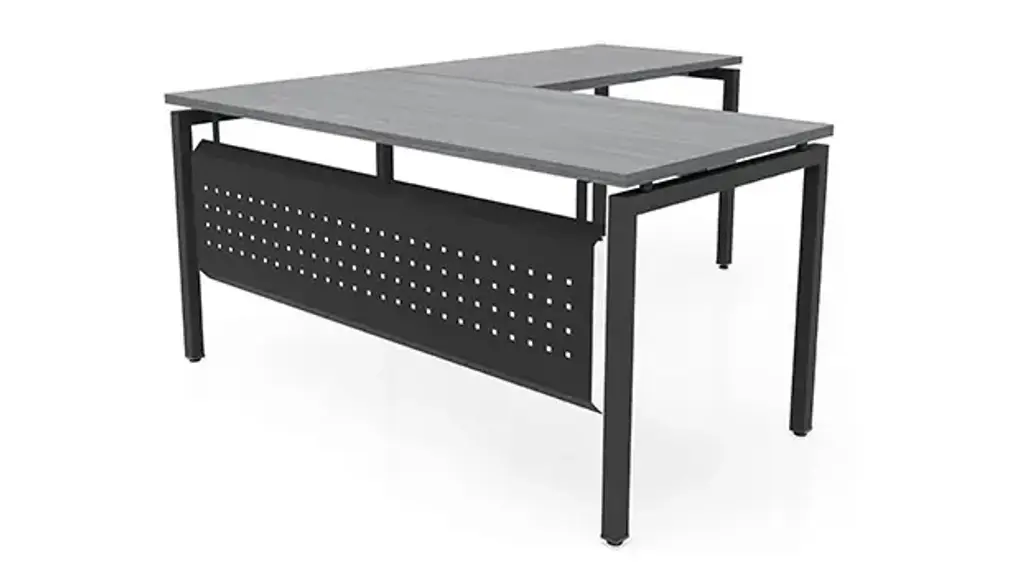 This Desk is Reversible OnTask L Shaped Desk offers a wonderful mixed material look that can be used in any work environment. Laminate top is 1" thick and is supported by the OnTask metal legs. Available in several laminate finishes and 2 metal colors. Includes punched metal modesty panel. Ships ready for easy assembly.