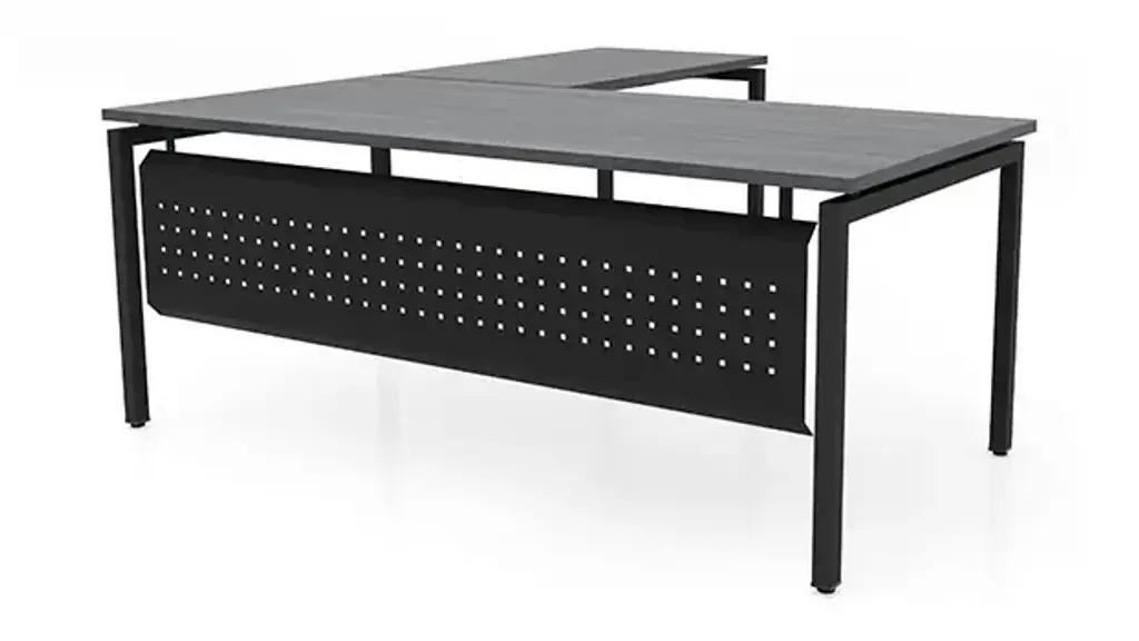 This Desk is Reversible OnTask L Shaped Desk offers a wonderful mixed material look that can be used in any work environment. Laminate top is 1" thick and is supported by the OnTask metal legs. Available in several laminate finishes and 2 metal colors. Includes punched metal modesty panel. Ships ready for easy assembly.