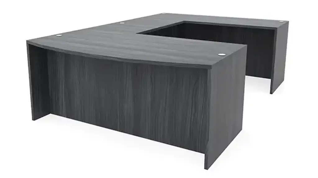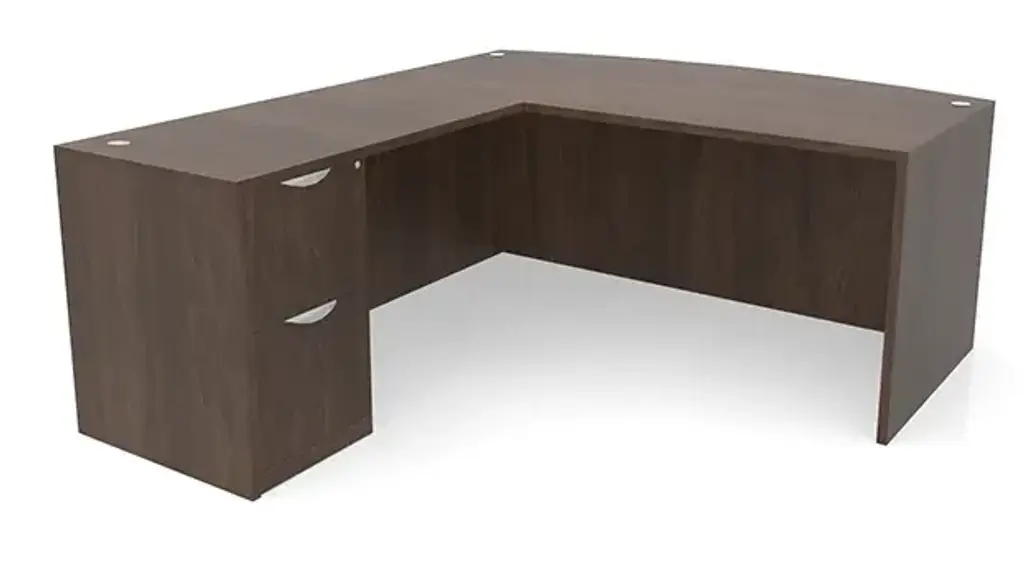 Durable laminate finish. Impact resistant edge protection. L-desk is fully reversible. Desk Shell Only - Pedestals Sold Separately. Ships ready for easy assembly.
