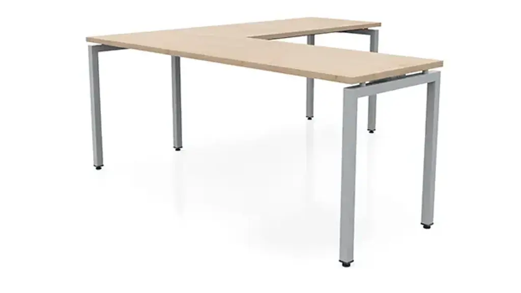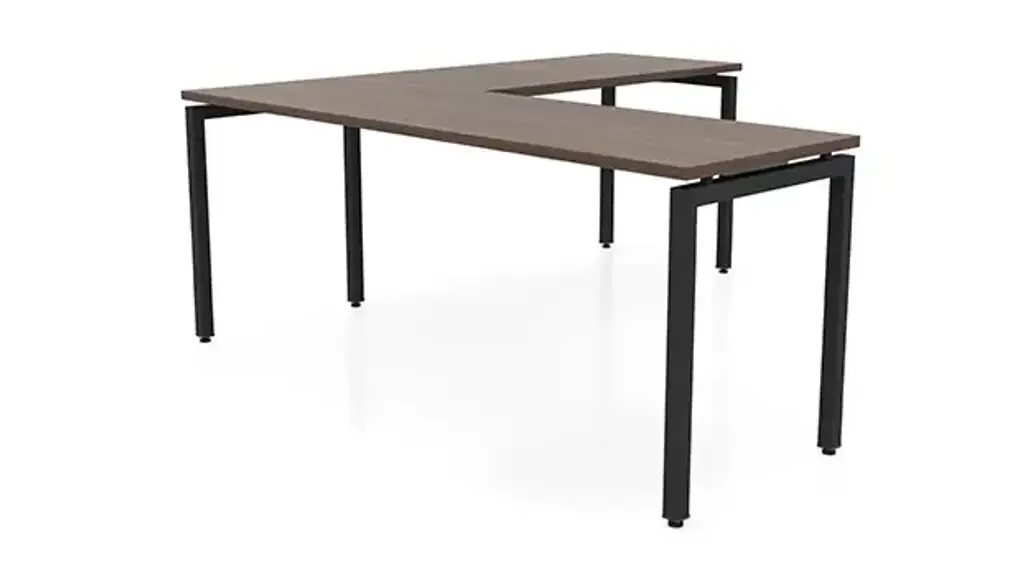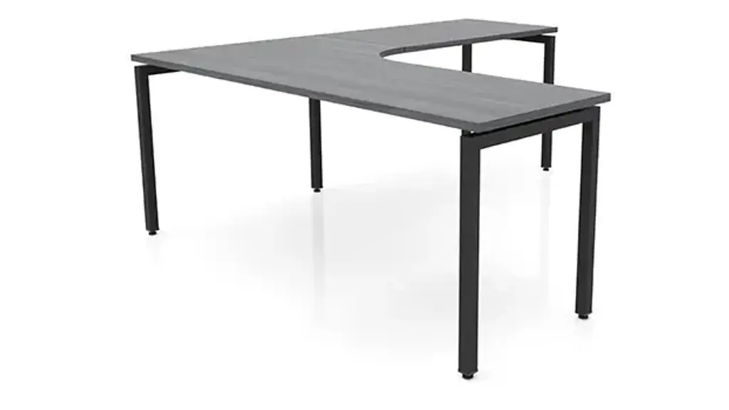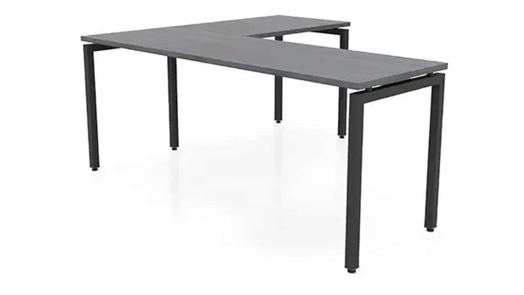 This Desk is Reversible OnTask Slender L Shaped Desk offers a wonderful mixed material look that can be used in any work environment. Slender because the work surface is 24"D on both the desk and the return. Laminate top is 1" thick and is supported by the OnTask metal legs. Available in several laminate finishes and 2 metal colors. Ships ready for easy assembly.