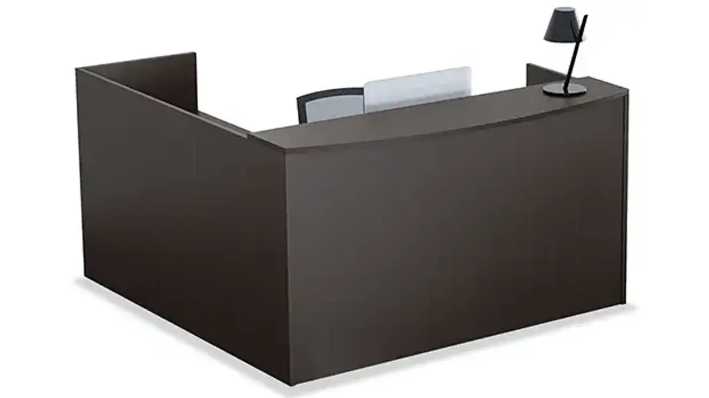 This Desk is Reversible PL Series L-Shaped reception desk has a durable laminate finish. Full height reception desk provides over 11 inches of privacy walls above the work surface. L-Shaped Reception Desk includes 3 grommets - 1 in each corner of the main desk and 1 centered on the back of edge of the return side. Available in several laminate finishes. Laminate transaction counter. Ships ready for easy assembly.