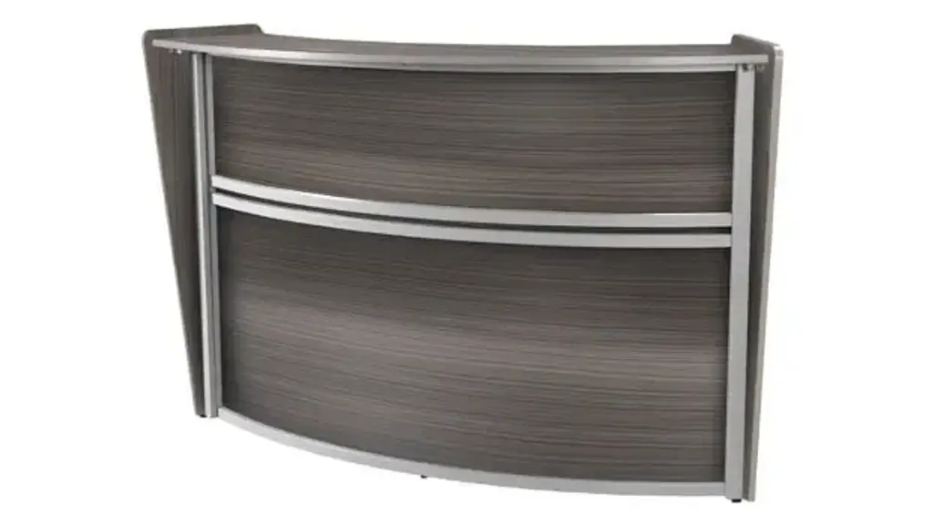 Introducing the ultimate reception desk solution - our beautifully designed, easy-to-assemble curved desk. With its advanced thermofused melamine finish and self-edge, this desk is not only functional but also a stunning addition to any office space. The sleek silver frame adds a touch of modernity and sophistication, making it the perfect piece to impress clients and guests. Spacious 19.75” D interior desk for your receptionist. Wire management cutouts on interior desk. And Leveling glides included allowing for ½” height adjustability. No tools required for assembly. Ships ready for easy assembly.