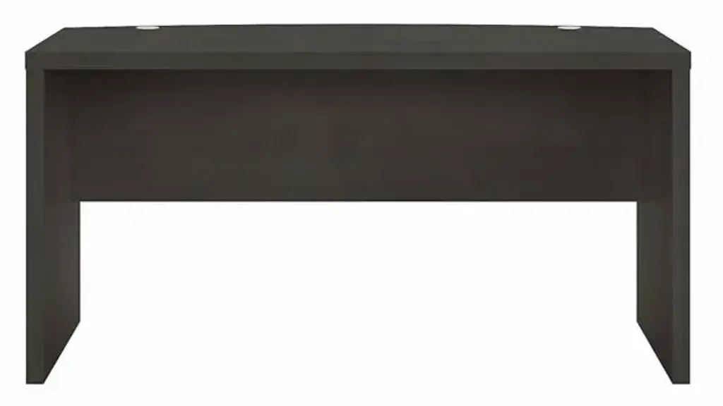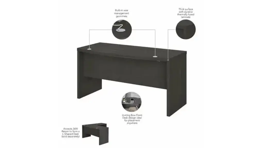 The Bush Business Furniture Echo Bow Front Desk creates a strong presence perfect for those whose passion for business is only matched by their fashionable tastes. Blending a laminate finish with appealing wide lines, the contemporary Desk inspires and gives a comfortable residential feel to the modern work space. Thick and durable, a thermally fused laminate finish endures years of everyday use to maintain the unique elegance of the Desk. Spread out on the spacious 60" surface with your computer, paperwork or any other tasks of the day. The Bow Front design impresses while encouraging placement in the middle of an office or room. Bush Business Furniture, the 60" Desk meets ANSI/BIFMA quality standards. Celebrate your unique style and personality with the Echo collection. Browse our full line of contemporary furniture to create an office set you'll love for years to come. Available in several laminate finishes with Satin Silver Hardware. Overall Dimensions: 60" W x 27.72" D x 30" H. Ships ready for easy assembly.