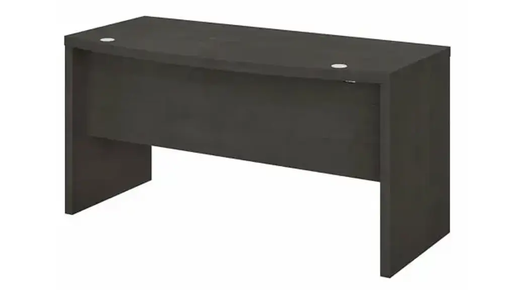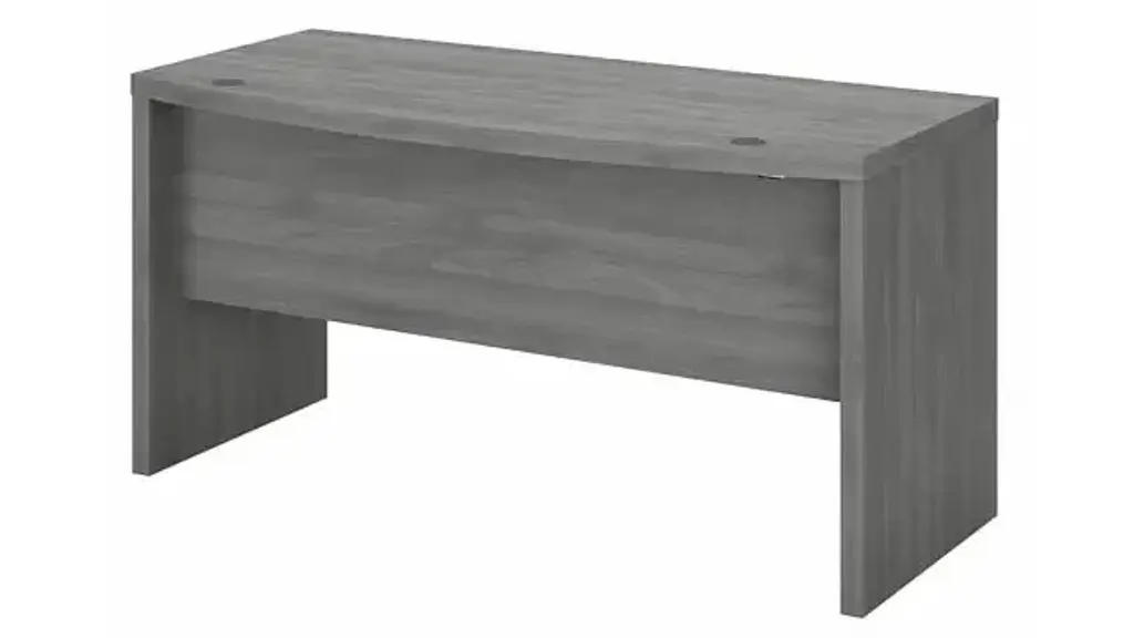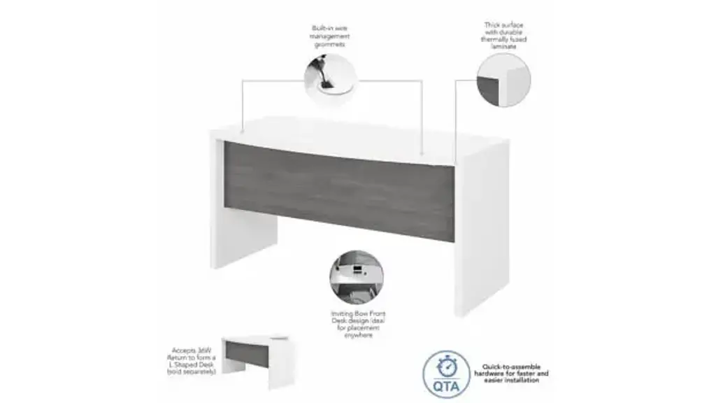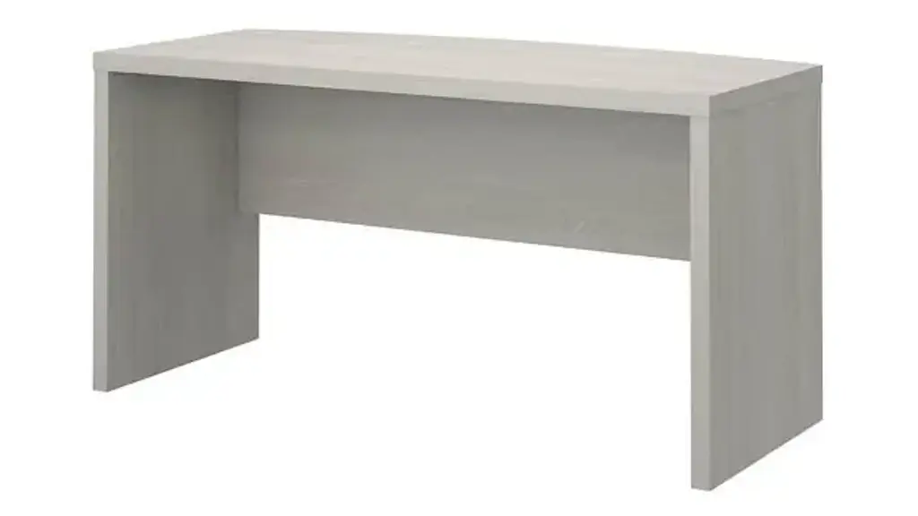 The Bush Business Furniture Echo Bow Front Desk creates a strong presence perfect for those whose passion for business is only matched by their fashionable tastes. Blending a laminate finish with appealing wide lines, the contemporary Desk inspires and gives a comfortable residential feel to the modern work space. Thick and durable, a thermally fused laminate finish endures years of everyday use to maintain the unique elegance of the Desk. Spread out on the spacious 60" surface with your computer, paperwork or any other tasks of the day. The Bow Front design impresses while encouraging placement in the middle of an office or room. Bush Business Furniture, the 60" Desk meets ANSI/BIFMA quality standards. Celebrate your unique style and personality with the Echo collection. Browse our full line of contemporary furniture to create an office set you'll love for years to come. Available in several laminate finishes with Satin Silver Hardware. Overall Dimensions: 60" W x 27.72" D x 30" H. Ships ready for easy assembly.