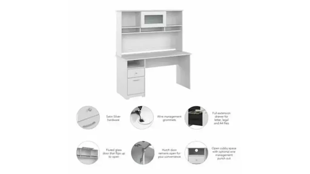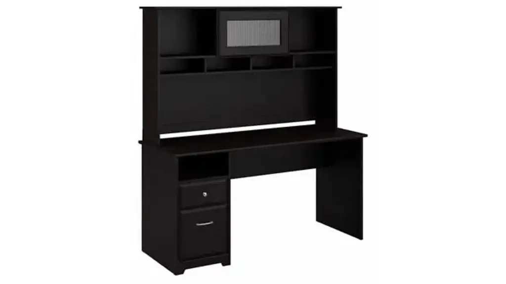 Create a stylish, functional and organized home office with the Bush Furniture Cabot 60"W Computer Desk with Hutch and Drawers. The spacious work surface allows you to spread out with your laptop, papers, printer and more with room to spare. Store files and supplies in the included drawers and open cubby shelf, designed for quick and easy access. A smooth full-extension drawer opens effortlessly on reliable ball bearing slides so you'll have no trouble reaching your letter or legal-size files. Beautiful Chrome-finished hardware is the perfect match for the Harvest Cherry finish, while the Hutch offers an eye-catching flip-up door and includes open storage space for books or decorations. The Computer Desk with Hutch and Drawers meets ANSI/SOHO quality test standards for safety and performance. See the full collection of coordinating home furnishings, and design your dream office with the elegant and efficient Cabot Collection. Overall Dimensions: 60"W x 23.19"D x 66.26"H. Ships ready for easy assembly.