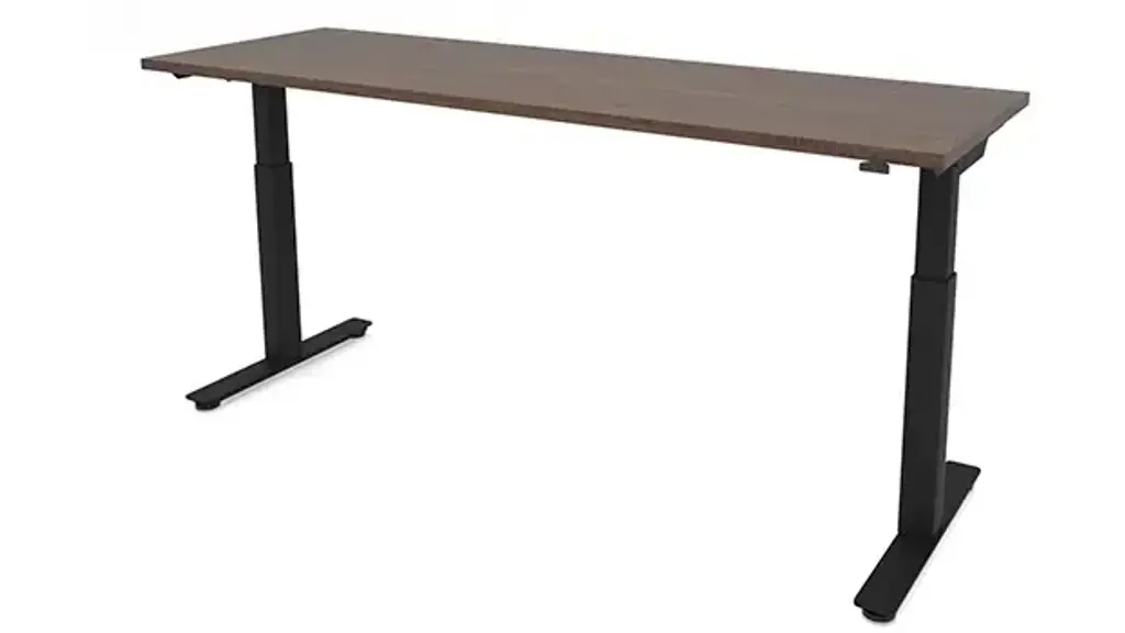 This Desk is Reversible StandUp Series Height adjustable desk allows you to work in the sitting or standing position.  Enjoy the health benefits of active working throughout the day as you change positions.  The Dual motor 3 stage legs adjust the work surface from 24-1/2" to 50" high.  Desk is designed to handle all your monitors and equipment as it can easily hold up to 220lbs.  Programmable height adjustment keypad allows you to program your preferred settings or move it up and down at the touch of a button.  Available in several laminate top colors and 2 metal leg colors.  Ships ready for easy assembly.