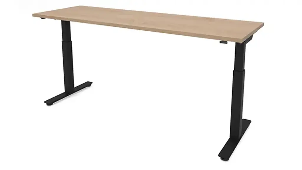 This Desk is Reversible StandUp Series Height adjustable desk allows you to work in the sitting or standing position. Enjoy the health benefits of active working throughout the day as you change positions. The Dual motor 3 stage legs adjust the work surface from 24-1/2" to 50" high. Desk is designed to handle all your monitors and equipment as it can easily hold up to 220lbs. Programmable height adjustment keypad allows you to program your preferred settings or move it up and down at the touch of a button. Available in several laminate top colors and 2 metal leg colors. Ships ready for easy assembly.