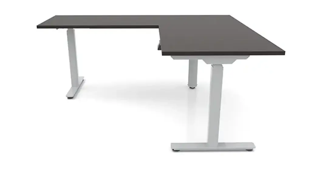 This Desk is Reversible StandUp Series Height adjustable 90 degree corner L desk allows you to work in the sitting or standing position. Raises the entire L shaped desk bringing all your work with you. Enjoy the health benefits of active working throughout the day as you change positions. The 3 motor, 3 stage legs adjust the work surface from 24-1/2" to 50" high. Desk is designed to handle all your monitors and equipment as it can easily hold up to 310lbs. Programmable height adjustment keypad allows you to program your preferred settings or move it up and down at the touch of a button. Available in several laminate top colors and 2 metal leg colors. Ships ready for easy assembly.