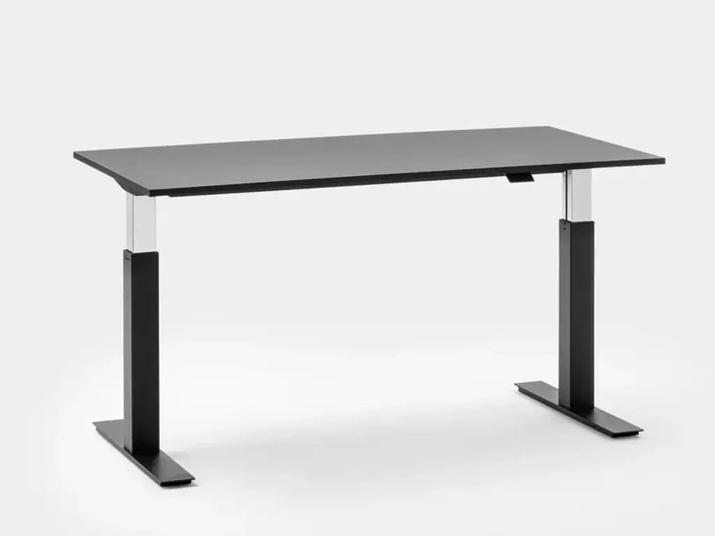 This Desk is Reversible StandUp Series Height adjustable desk allows you to work in the sitting or standing position. Enjoy the health benefits of active working throughout the day as you change positions. The Dual motor 3 stage legs adjust the work surface from 24-1/2" to 50" high. Desk is designed to handle all your monitors and equipment as it can easily hold up to 220lbs. Programmable height adjustment keypad allows you to program your preferred settings or move it up and down at the touch of a button. Available in several laminate top colors and 2 metal leg colors. Ships ready for easy assembly.