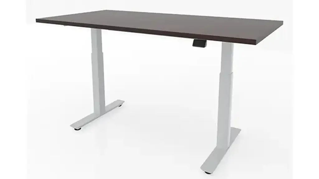 This Desk is Reversible StandUp Series Height adjustable desk allows you to work in the sitting or standing position. Enjoy the health benefits of active working throughout the day as you change positions. The Dual motor 2 stage legs adjust the work surface from 24-1/2" to 44-1/2" high. Desk is designed to handle all your monitors and equipment as it can easily hold up to 220lbs. Programmable height adjustment keypad allows you to program your preferred settings or move it up and down at the touch of a button. Available in several laminate top colors and 2 metal leg colors. Ships ready for easy assembly.