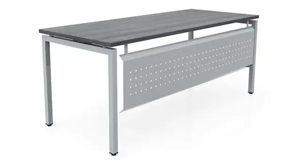 This Desk is Reversible OnTask Collection offers a wonderful mixed material look that can be used in any work environment.  Laminate top is 1" thick and is supported by the OnTask metal legs.  Available in several laminate finishes and 2 metal colors.  Includes punched metal modesty panel. Ships ready for easy assembly.