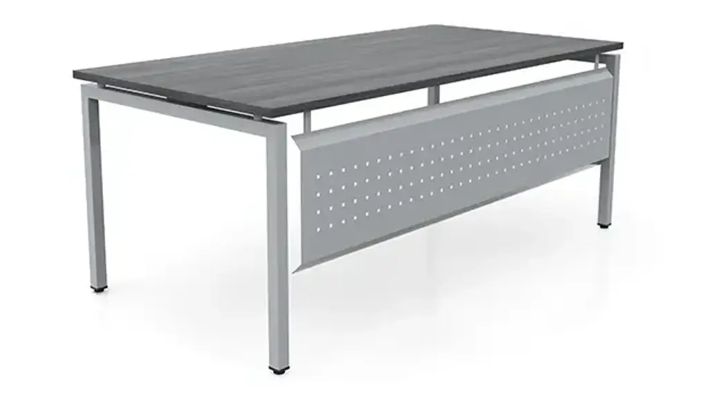 This Desk is Reversible OnTask Collection offers a wonderful mixed material look that can be used in any work environment. Laminate top is 1" thick and is supported by the OnTask metal legs. Available in several laminate finishes and 2 metal colors. Includes punched metal modesty panel. Ships ready for easy assembly.