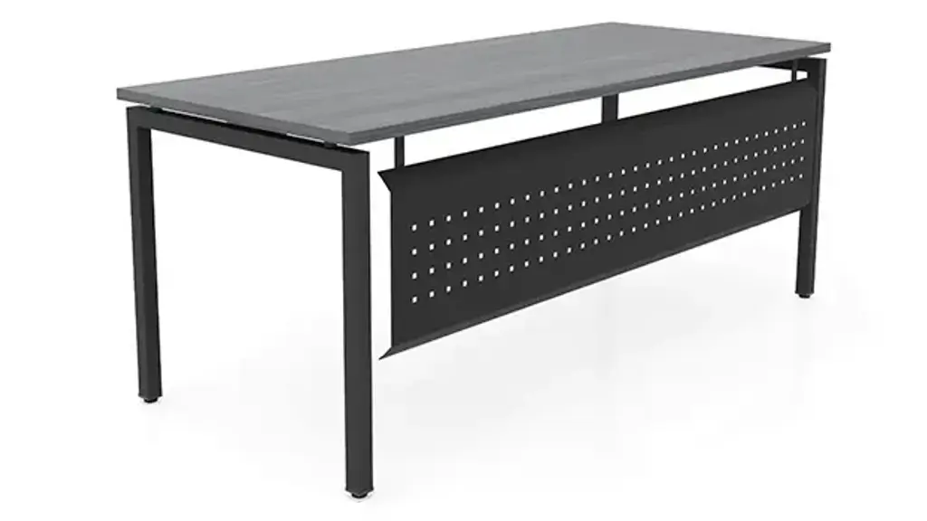 This Desk is Reversible OnTask Collection offers a wonderful mixed material look that can be used in any work environment. Laminate top is 1" thick and is supported by the OnTask metal legs. Available in several laminate finishes and 2 metal colors. Includes punched metal modesty panel. Ships ready for easy assembly.