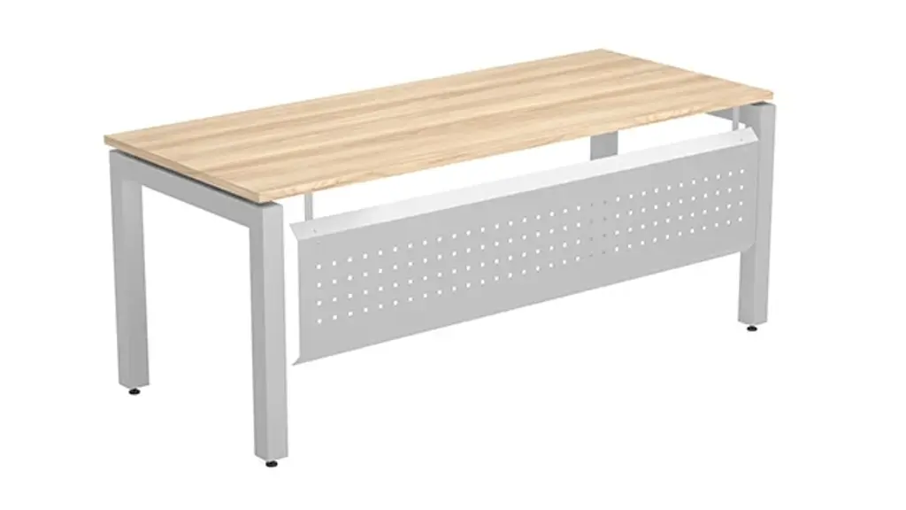 This Desk is Reversible OnTask Collection offers a wonderful mixed material look that can be used in any work environment. Laminate top is 1" thick and is supported by the OnTask metal legs. Available in several laminate finishes and 2 metal colors. Includes punched metal modesty panel. Ships ready for easy assembly.