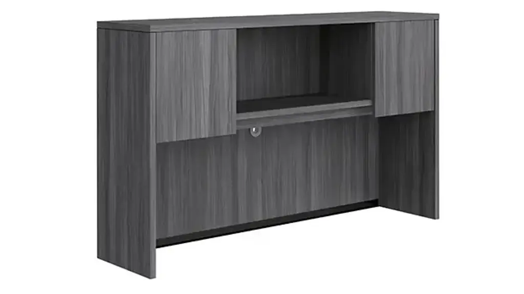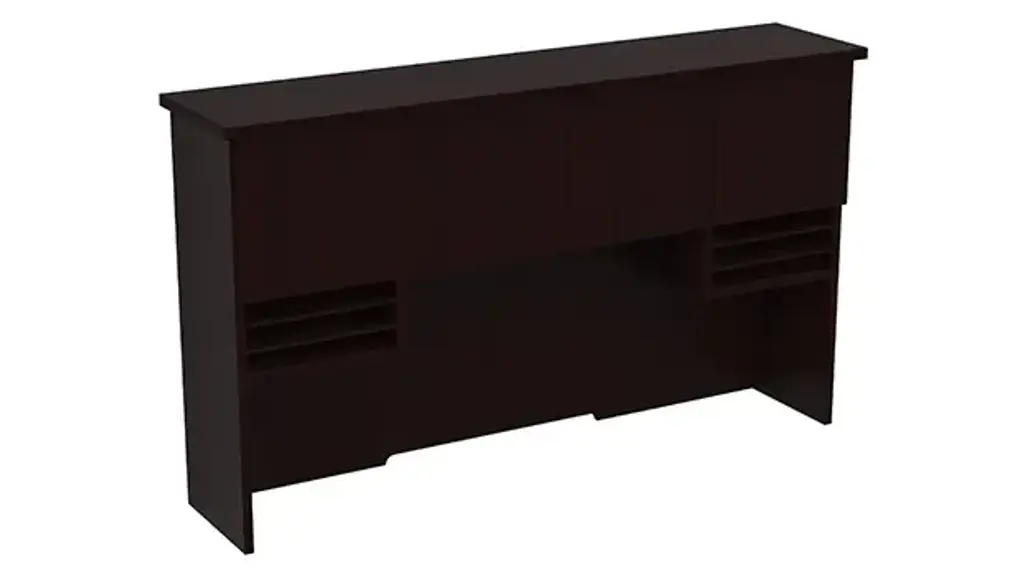 Storage Hutch with 4 laminate doors features a durable laminate finish. High-impact 3 mil Tough Edge is standard on all tops and end panels. It's strength and durability helps protect the edge from scratches, chips and dents. Available in several laminate finishes. Ships ready for easy assembly.