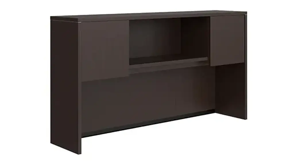Hutch with 2 Laminate Doors features a durable laminate finish. High-impact 3 mil Tough Edge is standard on all tops and end panels. It's strength and durability helps protect the edge from scratches, chips and dents. Available in several laminate finishes. Ships ready for easy assembly.