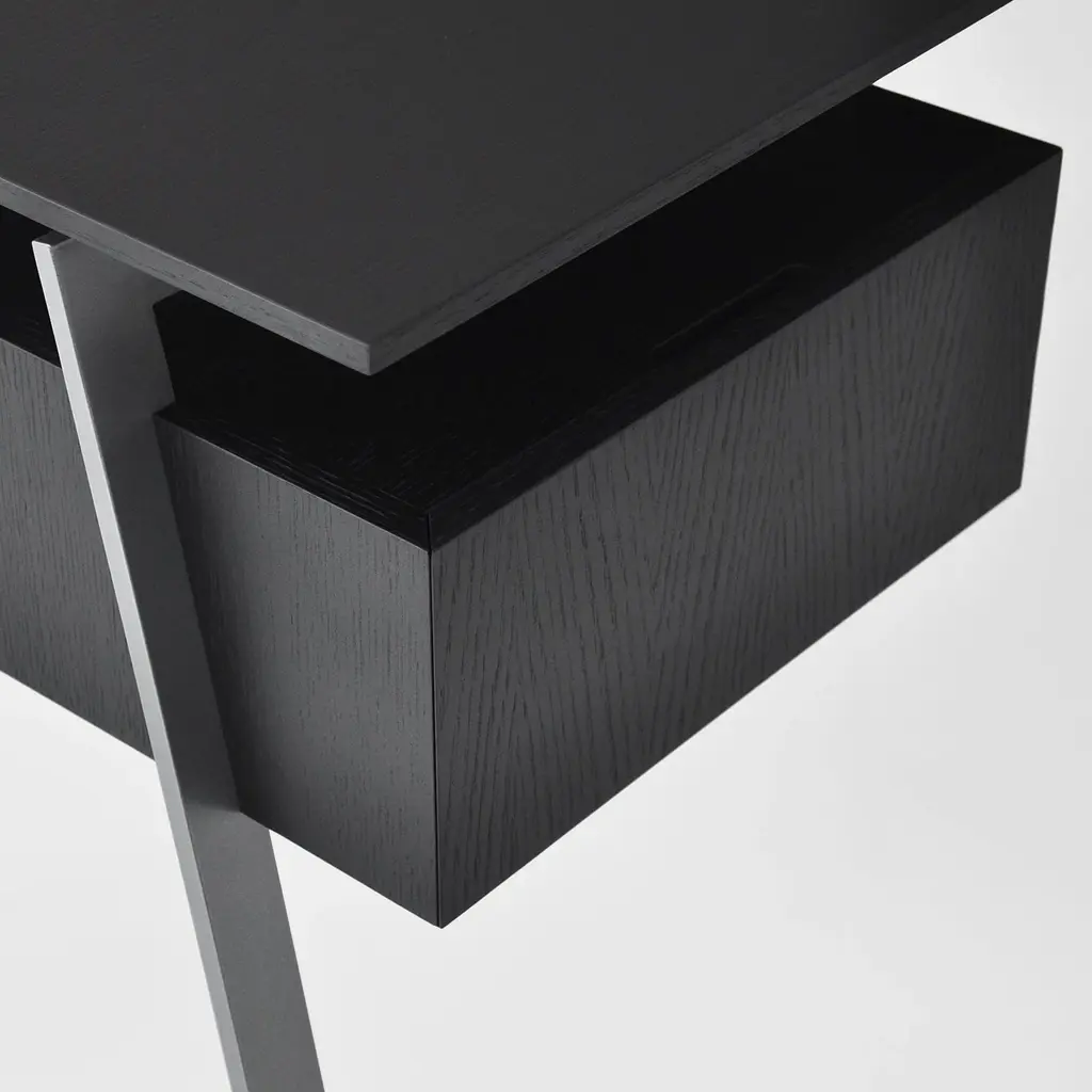 As more and more work migrates from traditional offices, an elegantly versatile option like Homework Desk brings it home in style. Configured for a left-hand orientation, the notched drawer is cantilevered from the frame for a floating appearance. Assembly is simple, with only a few bolts needed to create an extremely sturdy desk that is attractive from all angles. Drawer available in either carefully matched wood veneers or ultra high-gloss polyurethane and equipped with soft-close runners and cable-management opening. Choose the desktop in either durable tempered glass or a range of matte-lacquer wood finishes.