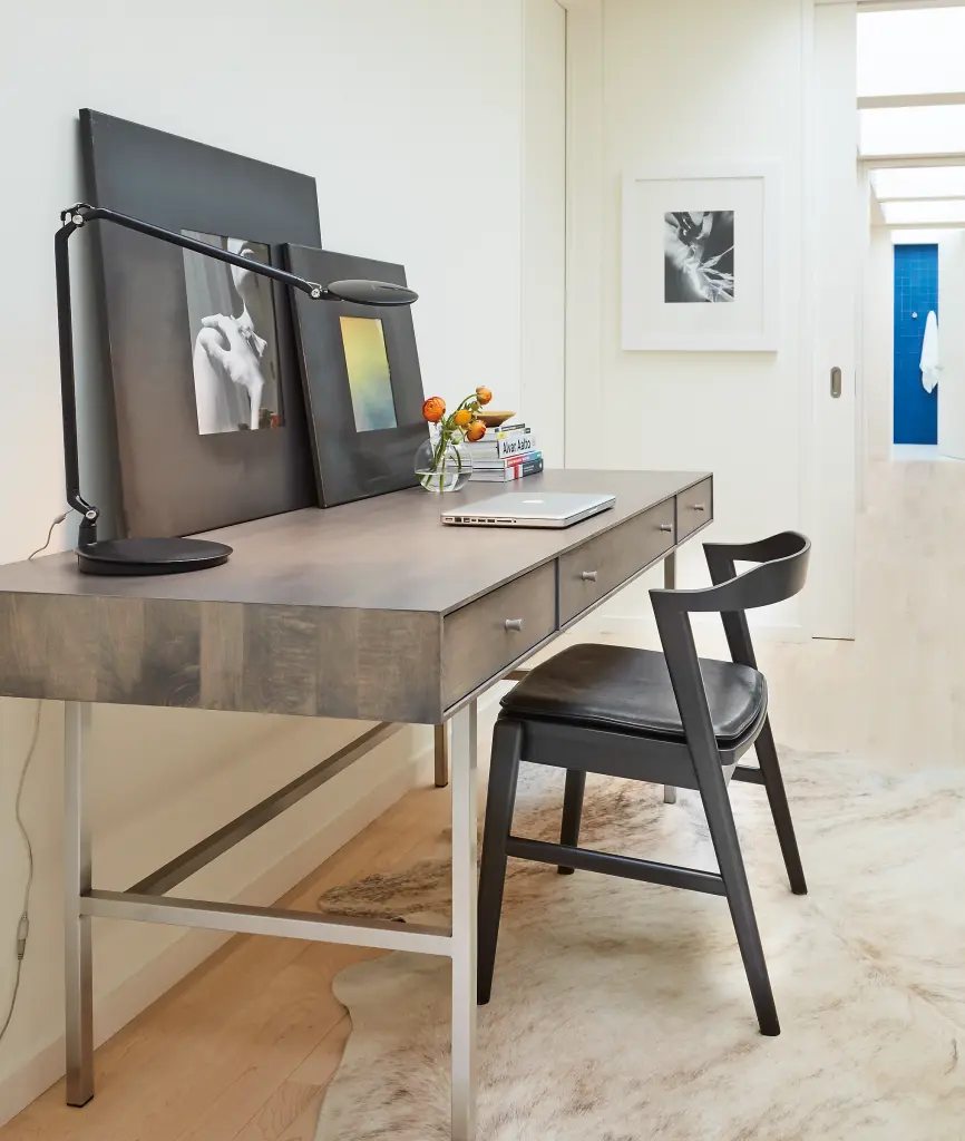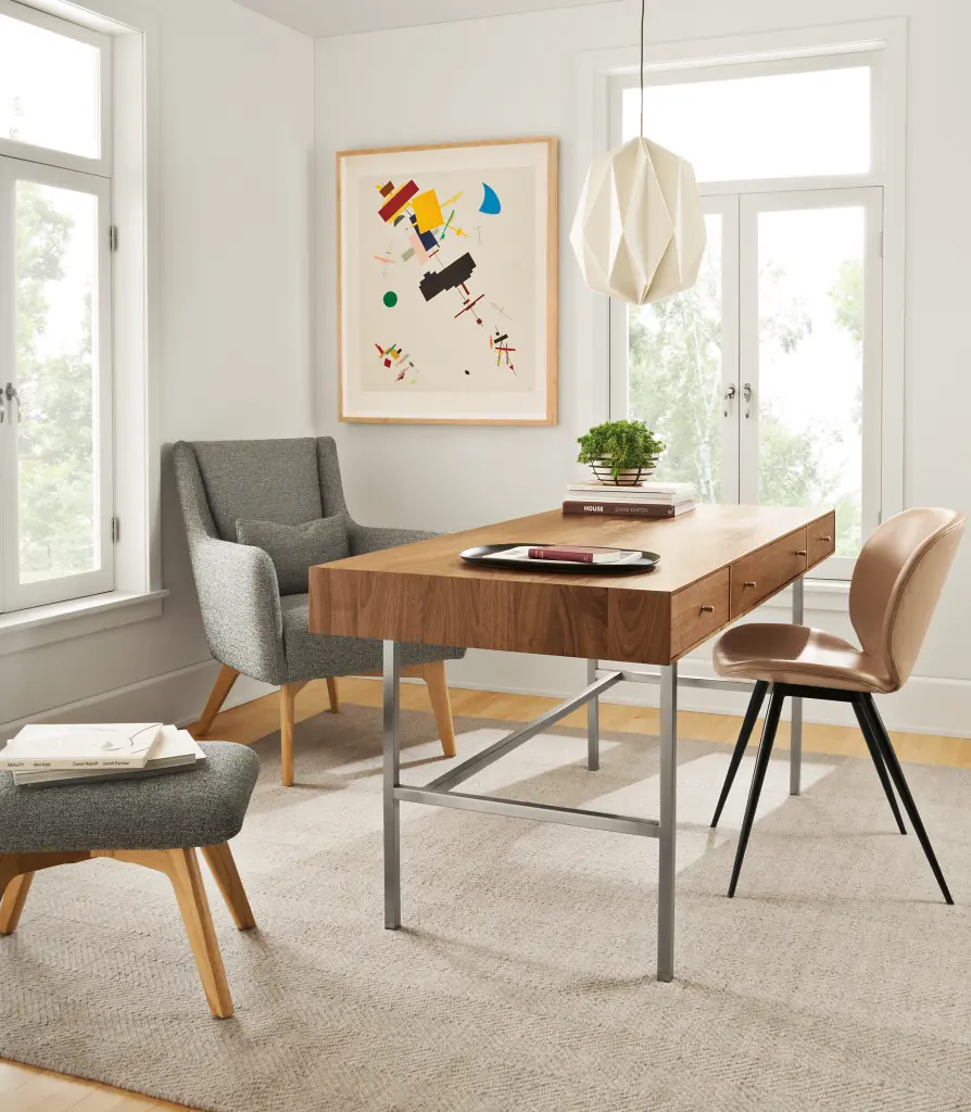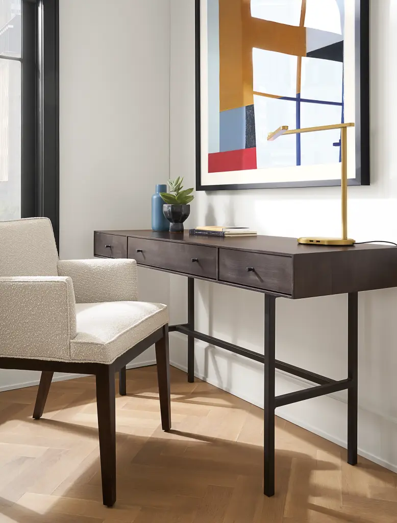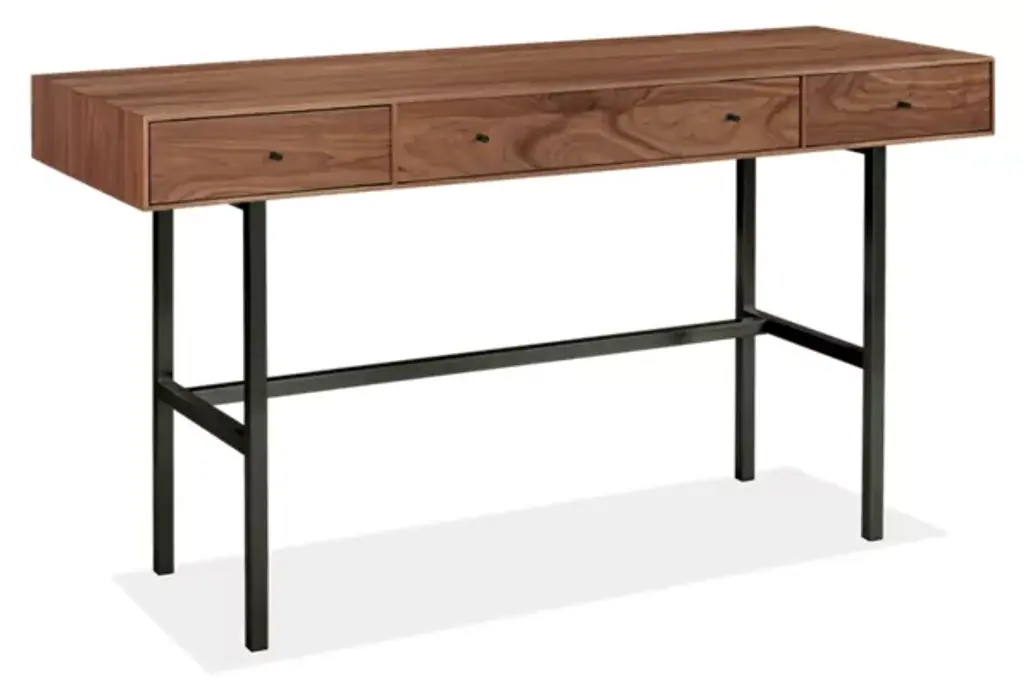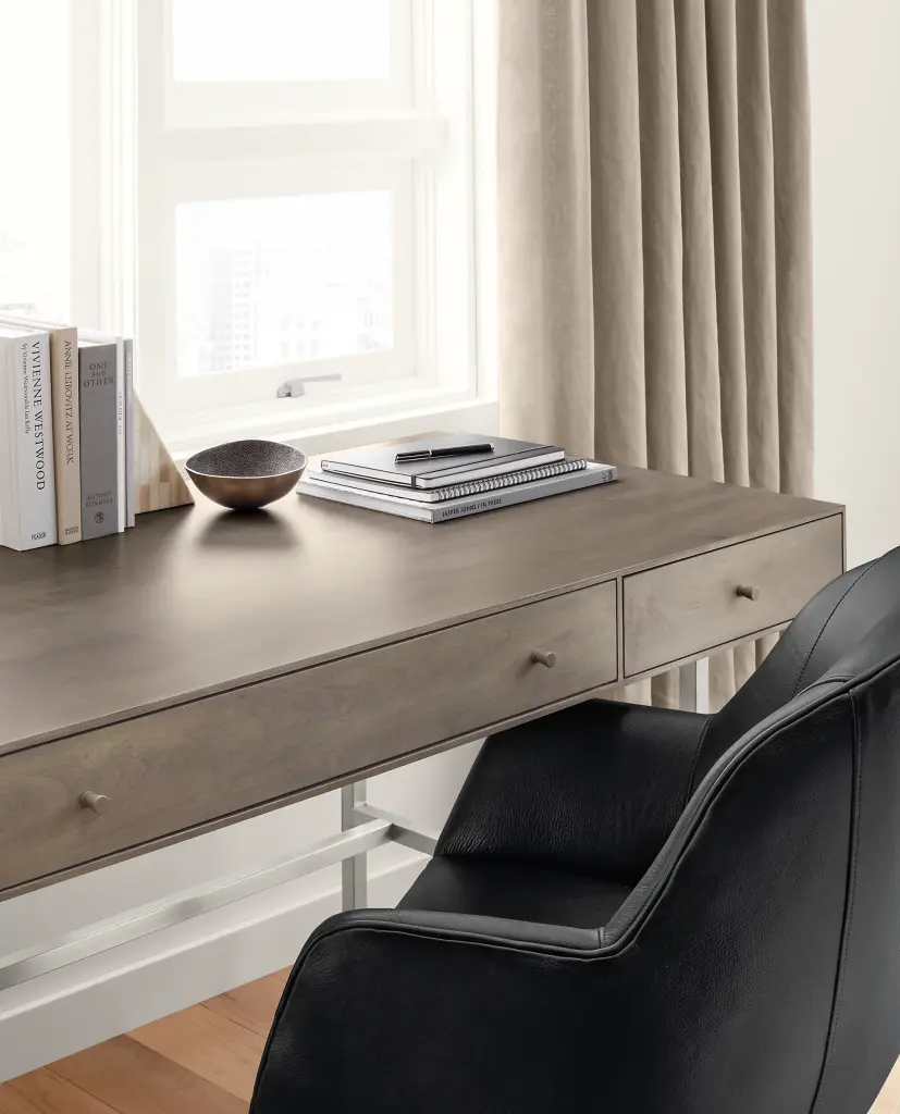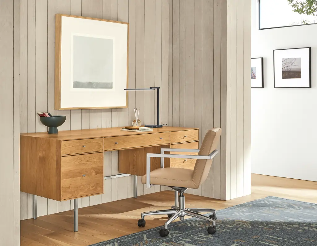 Built to be rock solid, this modern desk is handcrafted in West Virginia by skilled artisans, who share their pride by signing the back of each piece. The natural grain of sustainably sourced U.S. solid wood is the perfect backdrop for the sleek, timeless design of this collection.