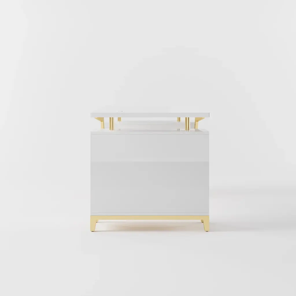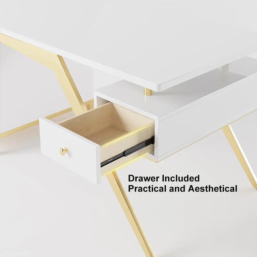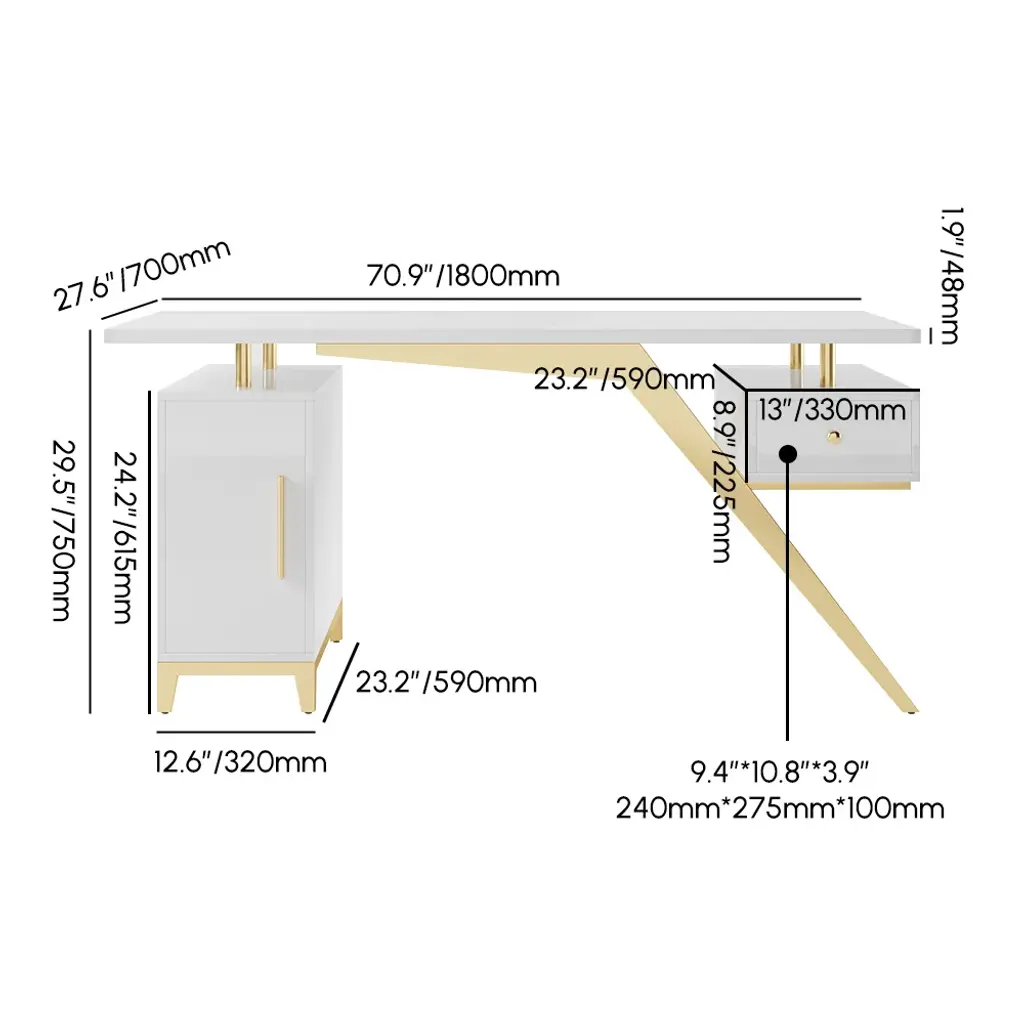 Hungled 71" Modern White Computer Desk Luxury Gold Office Desk With Storage & 1 Cabinet