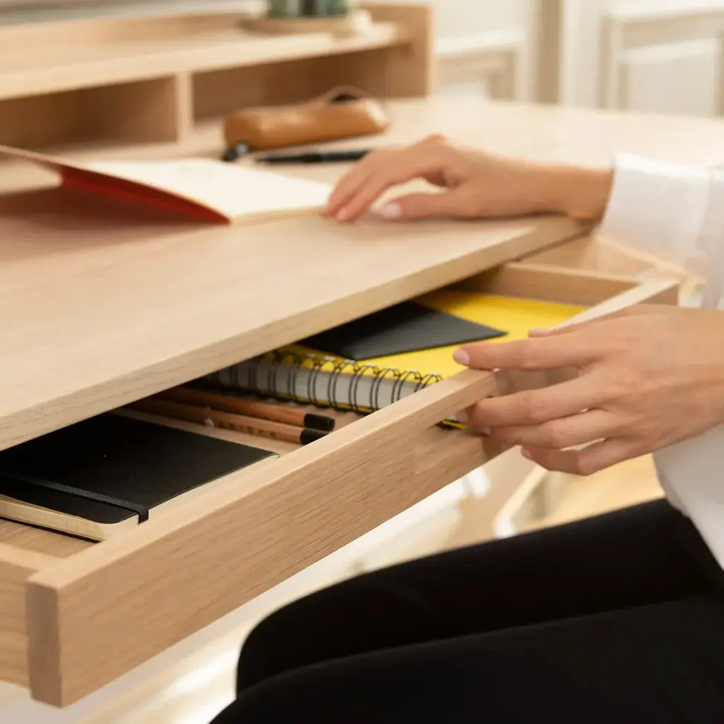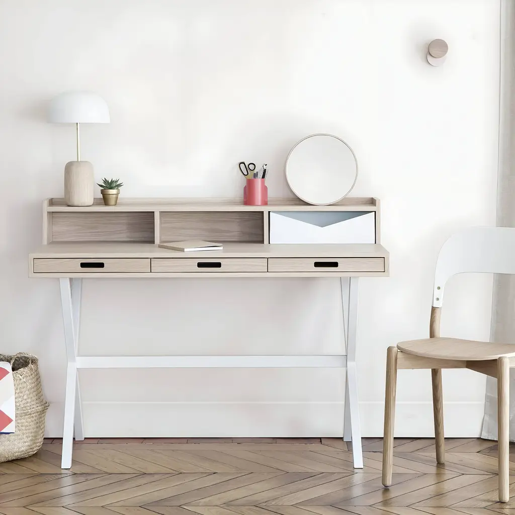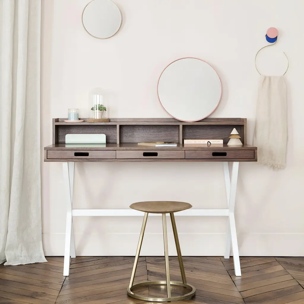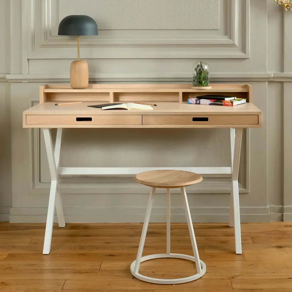 With Hyppolite, French brand Hartô puts a modernist spin on a secretary-style desk. Designer Florence Watine essays an attractive combination of oak-or walnut-veneered top and a metal trestle base in a classic X formation. A sleek design that doesn't take much space in a room, it still gives offers plenty of workspace—as well as 3 compartments and 3 drawers for keeping everything organized and tidy.