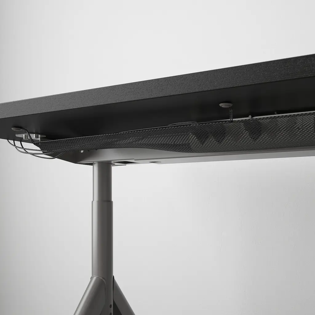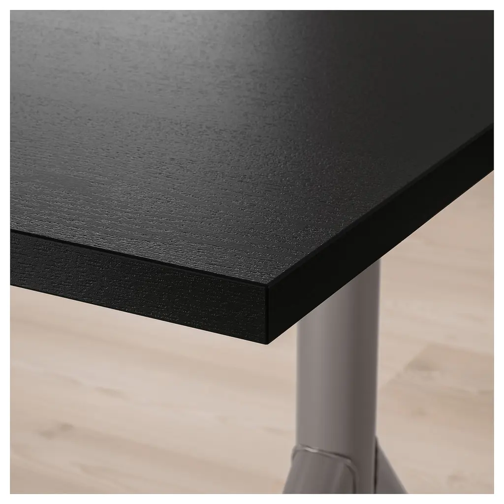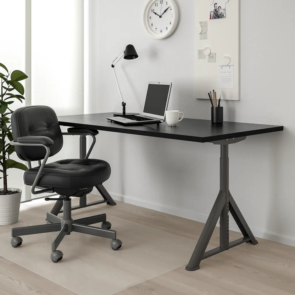 IDÅSEN Desk - black/dark gray 63x31 1/2 ". 10-year Warranty. Read about the terms in the warranty brochure. You can mount the tabletop at a height that suits you since the legs are adjustable between 24⅜ and 29⅞". The veneer surface is durable, stain resistant and easy to keep clean.