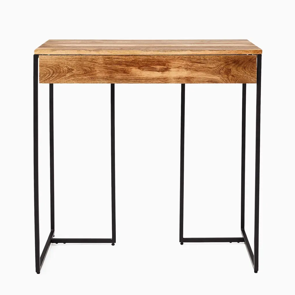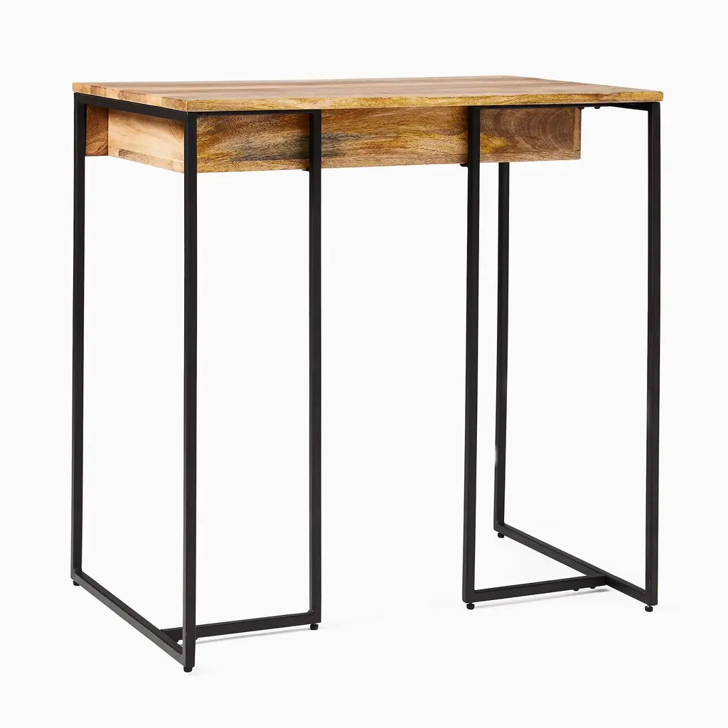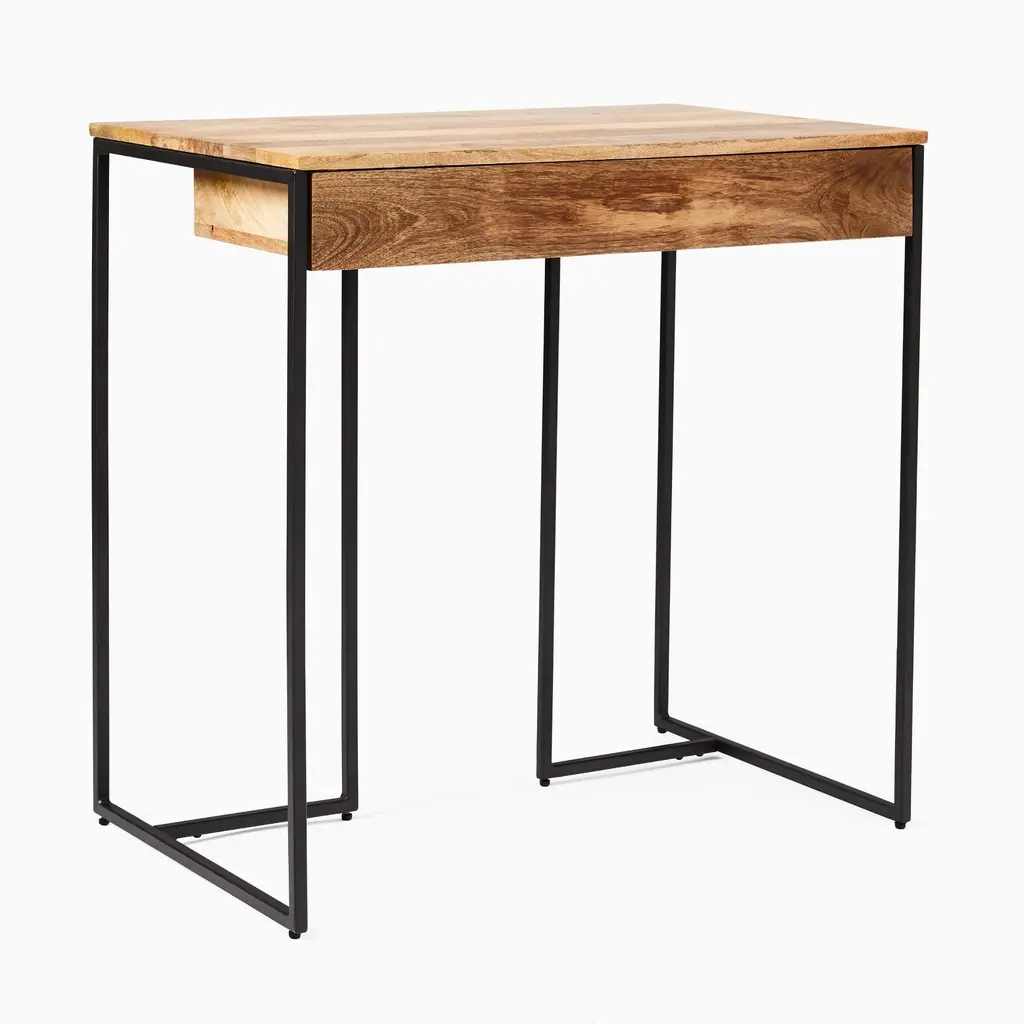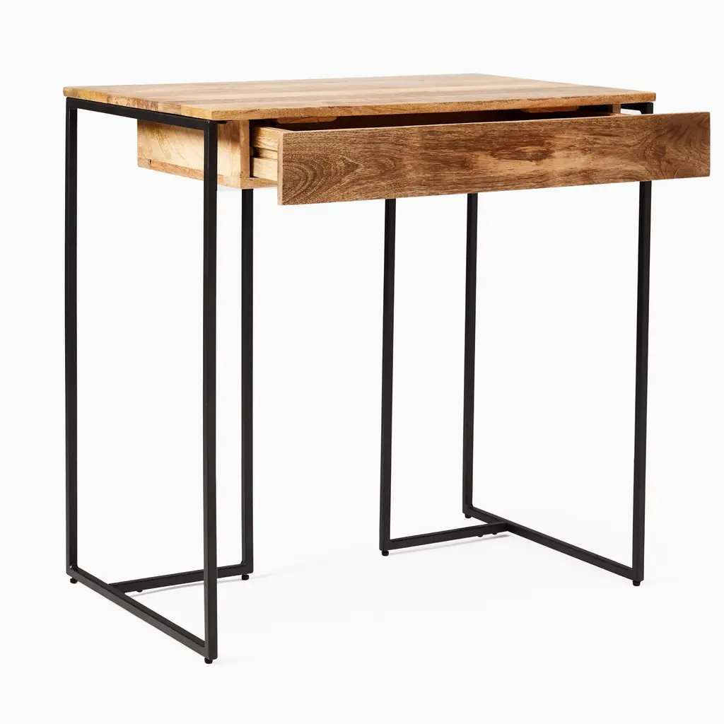 Made from richly grained solid mango wood and lofted on antique bronze-finished metal legs, our Industrial Mini Desk carves out a spot in even the smallest of spaces for writing, reading or catching up on email.