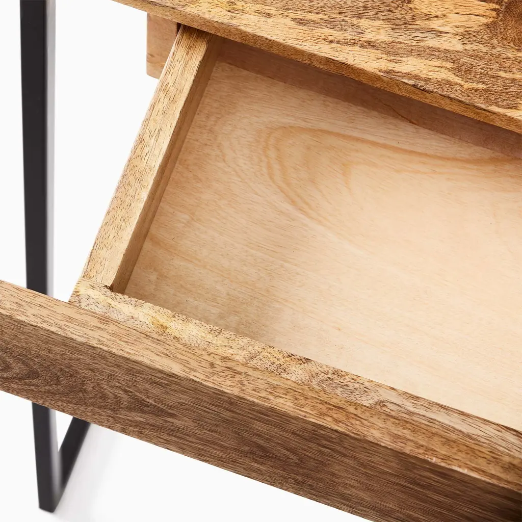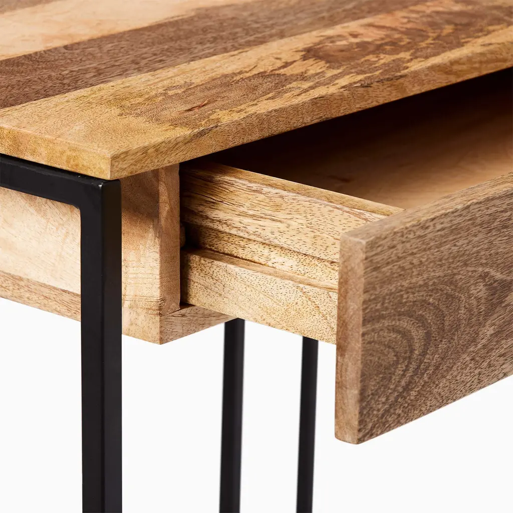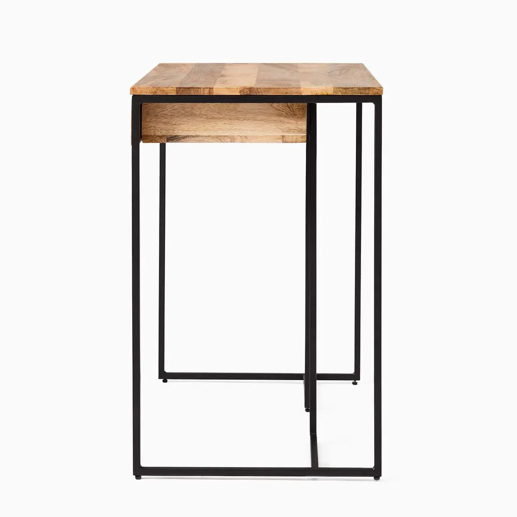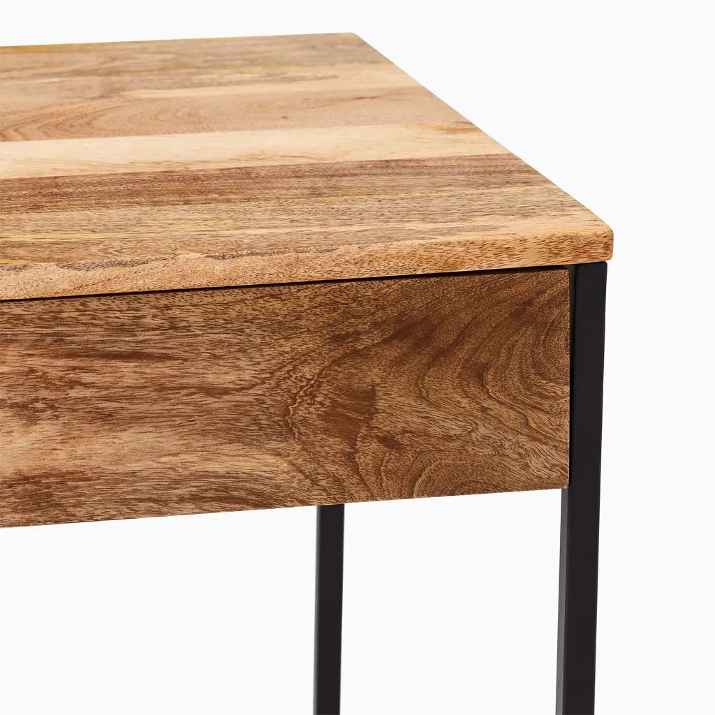 Made from richly grained solid mango wood and lofted on antique bronze-finished metal legs, our Industrial Mini Desk carves out a spot in even the smallest of spaces for writing, reading or catching up on email.