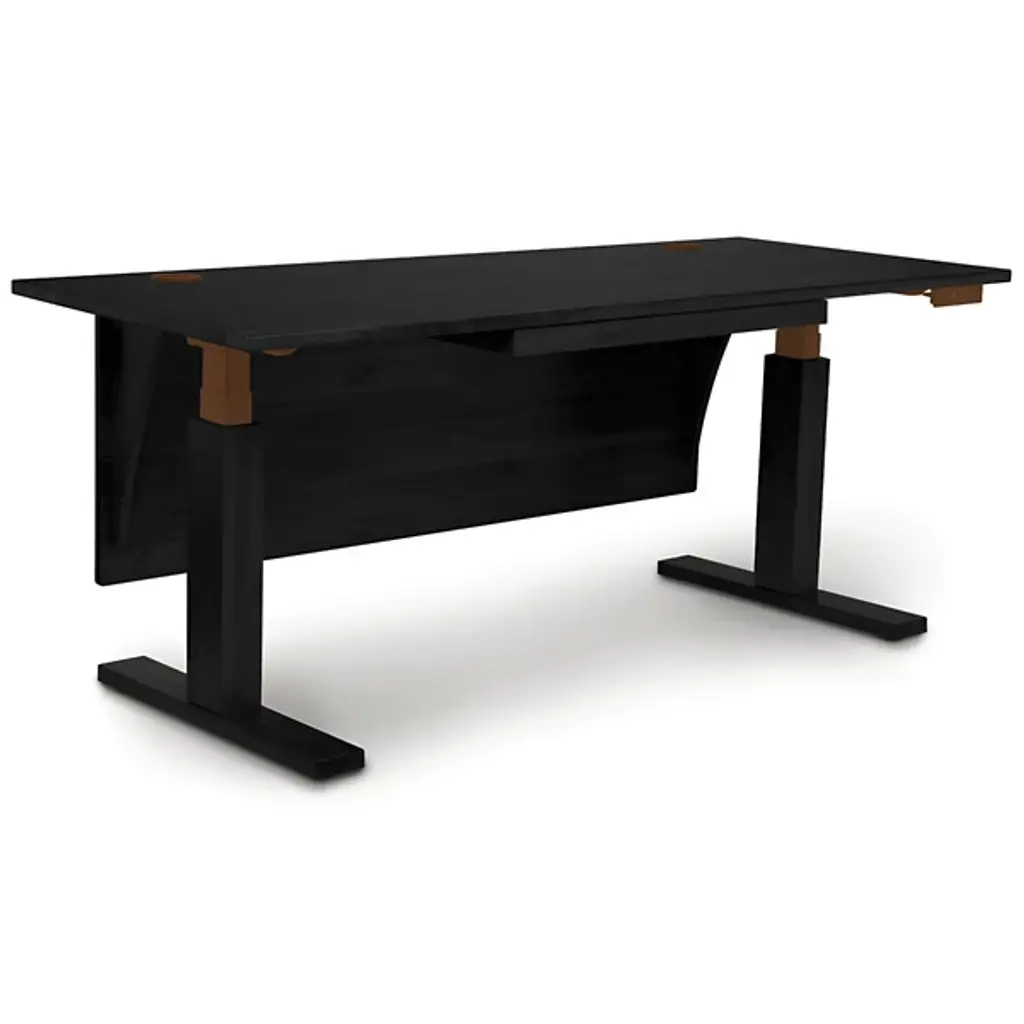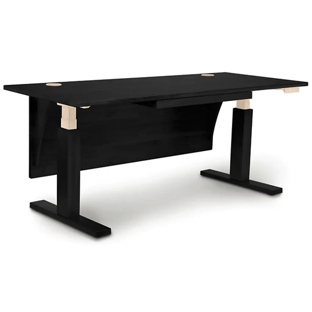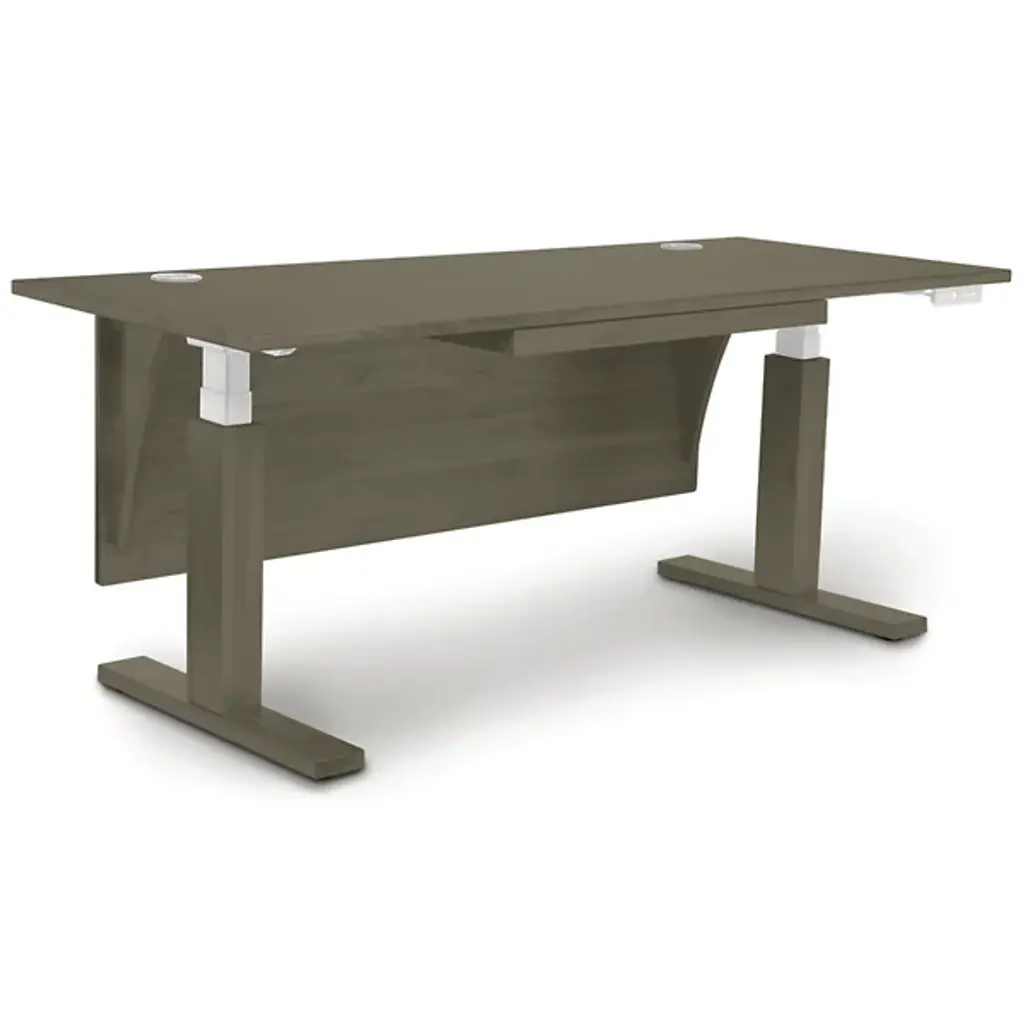 Crafted to perfection using sustainably sourced American hardwood, the Invigo Sit-Stand Desk with Modesty Panel by Copeland Furniture combines modern technology with contemporary design. With 3 programmable positions, the desk raises and lowers in height from 25" to 51" thanks to its dual-motor lift base. Creating an organized workspace is made easy thanks to the wire pass, power insert, drawer and modesty panel features. This sit-to-stand desk is the perfect choice for your home office.
