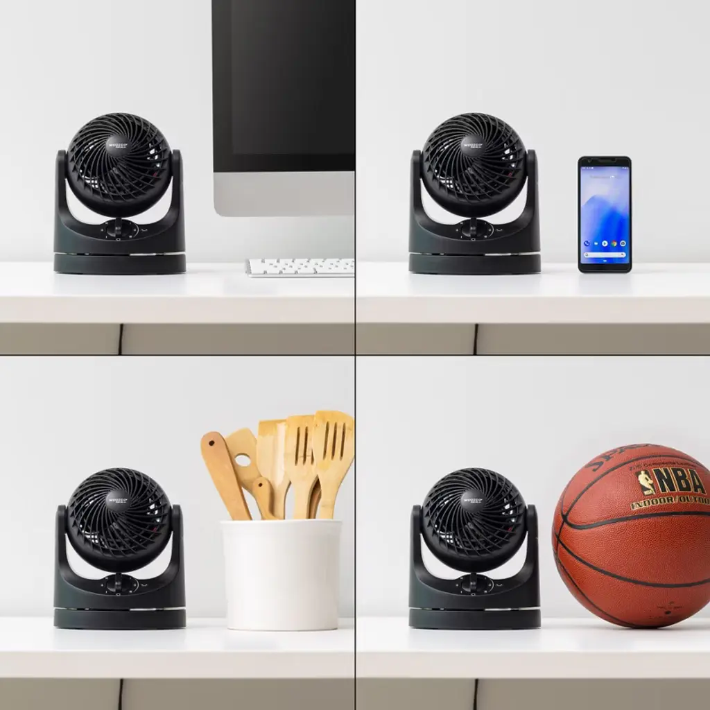 Iris Usa Woozoo Fan, Small Oscillating Desk Fan, Table Air Circulator, 3 Speeds, 32ft Max Air Distance, Mini Fan 8 Inches, 112° Adjustable Tilt, Black