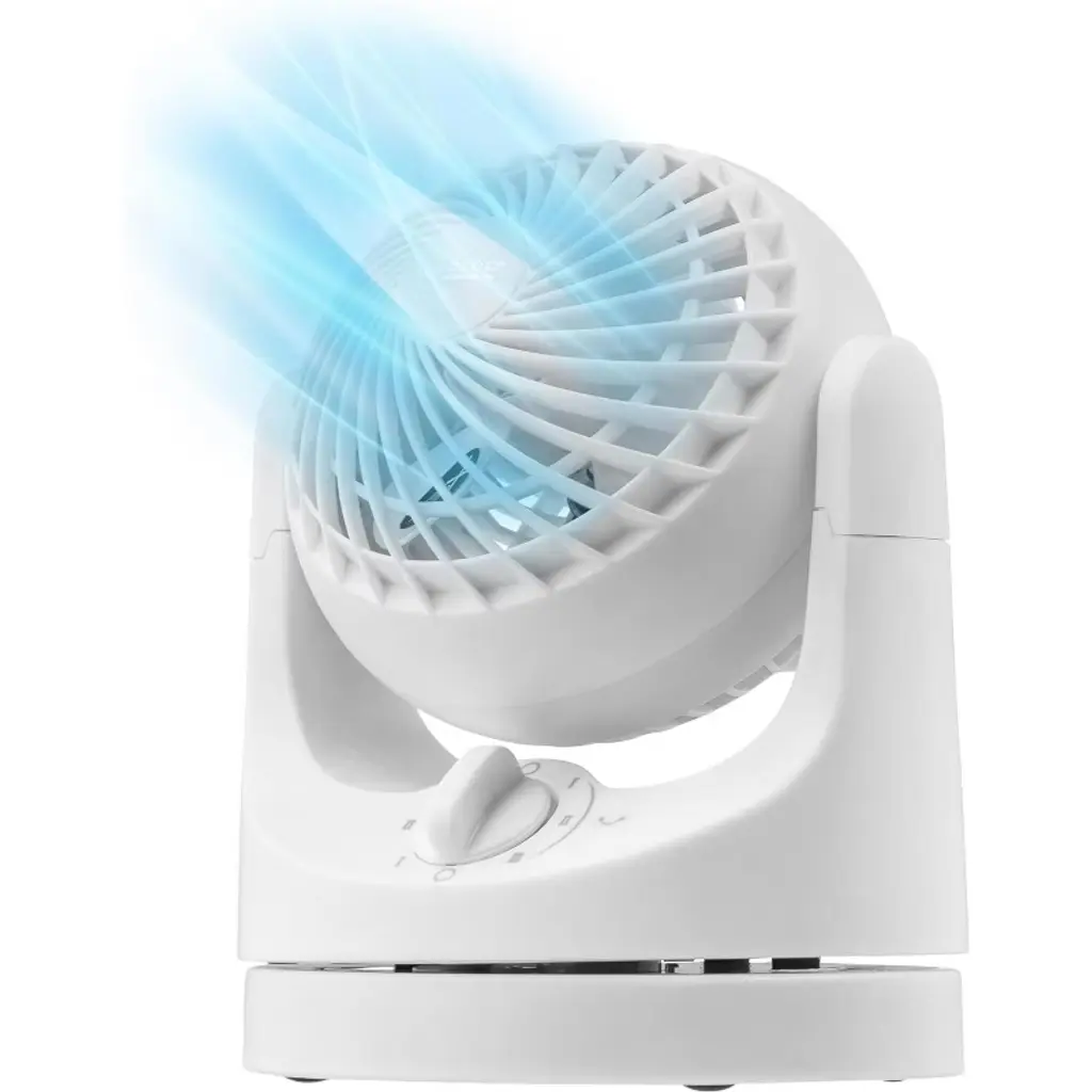 Perfect for the office, home or a dorm room, the WOOZOO personal fan offers powerful cooling air while compact size unit saves space. The adjustable fan head pivots vertically from 22.5 to 90 degrees, with three speeds settings on tabletop circulator to meet your cooling needs. Enjoy extra-quiet cooling on the virtually silent “low” setting. Desktop fan has a 55” cord, making it easy to reach the outlet.