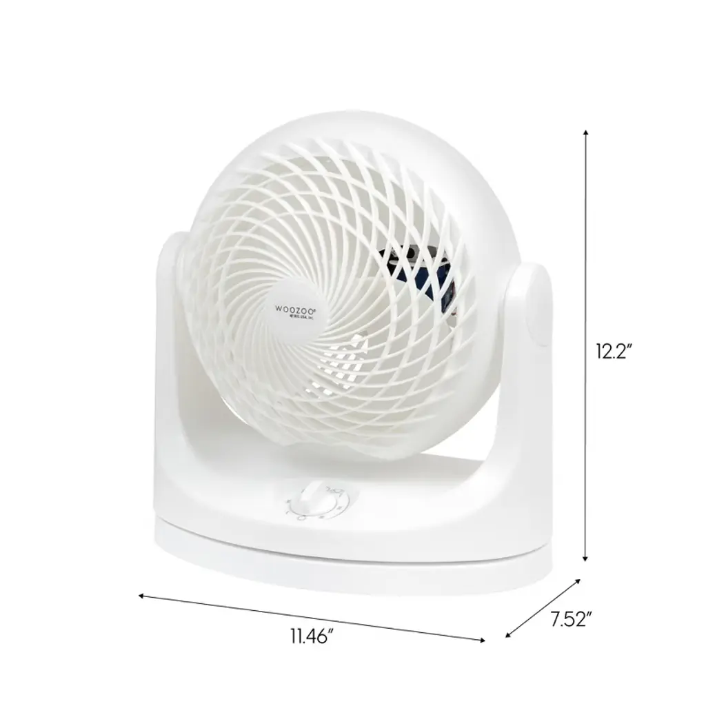 Iris Usa Woozoo Fan, Small Oscillating Desk Fan, Table Air Circulator, 3 Speeds, 52ft Max Air Distance, 12 Inches, 112° Adjustable Tilt, White