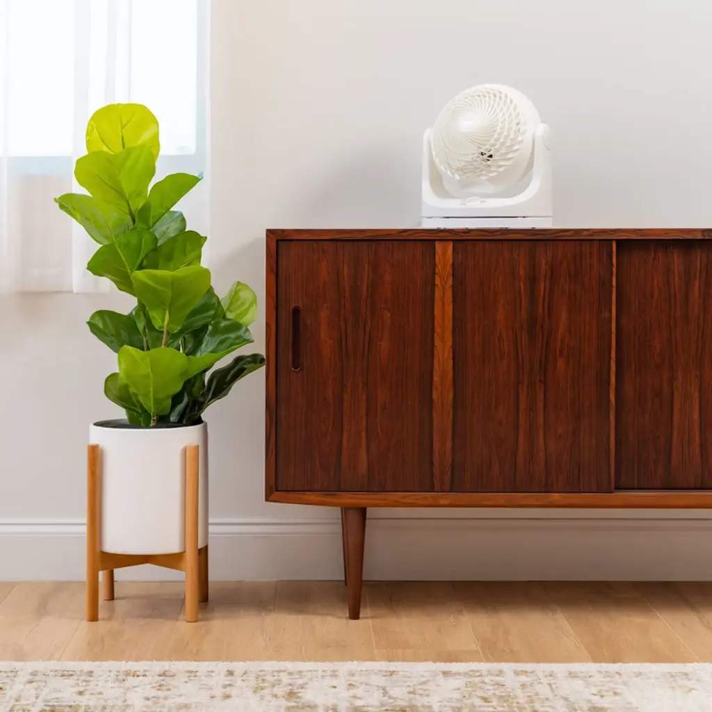 Perfect for the office, home or a dorm room, the WOOZOO personal fan offers powerful cooling air while compact size unit saves space. The adjustable fan head pivots vertically from 20 to 90 degrees, with three speeds settings on tabletop circulator to meet your cooling needs. Enjoy extra-quiet cooling on the virtually silent “low” setting. Desktop fan provides up to 275 ft² area coverage, and the 55” cord makes it easy to reach the outlet.Model: PCF-HE18.