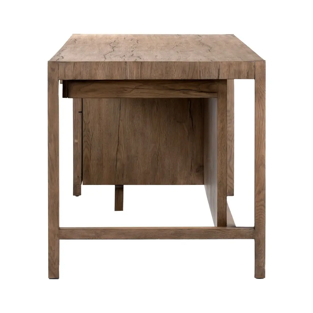 Crafted from high-quality oak and oak veneer, the Isabella Suspension Desk offers an executive-size workspace with a fully finished back, allowing for versatile placement within any room. This sophisticated desk is designed with ample storage, featuring a variety of drawer sizes to accommodate all your organizational needs. Its elegant design and practical functionality make it a perfect addition to any professional setting.