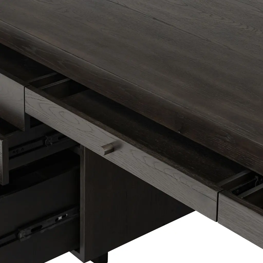 Crafted from high-quality oak and oak veneer, the Isabella Suspension Desk offers an executive-size workspace with a fully finished back, allowing for versatile placement within any room. This sophisticated desk is designed with ample storage, featuring a variety of drawer sizes to accommodate all your organizational needs. Its elegant design and practical functionality make it a perfect addition to any professional setting.